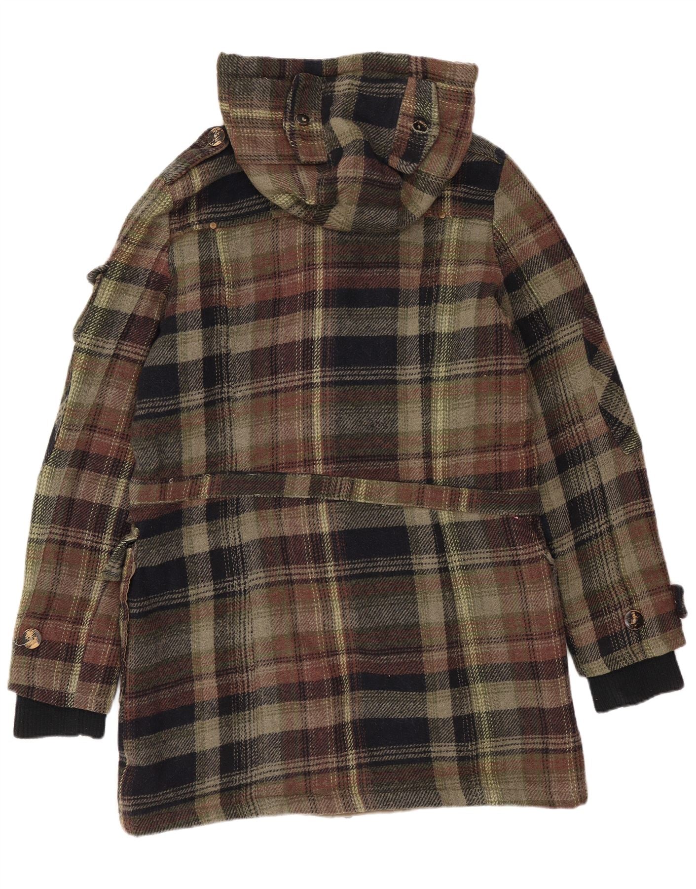 Vintage Dame Oversized Hooded Duffel Coat UK 10 Small Khaki Check Wool