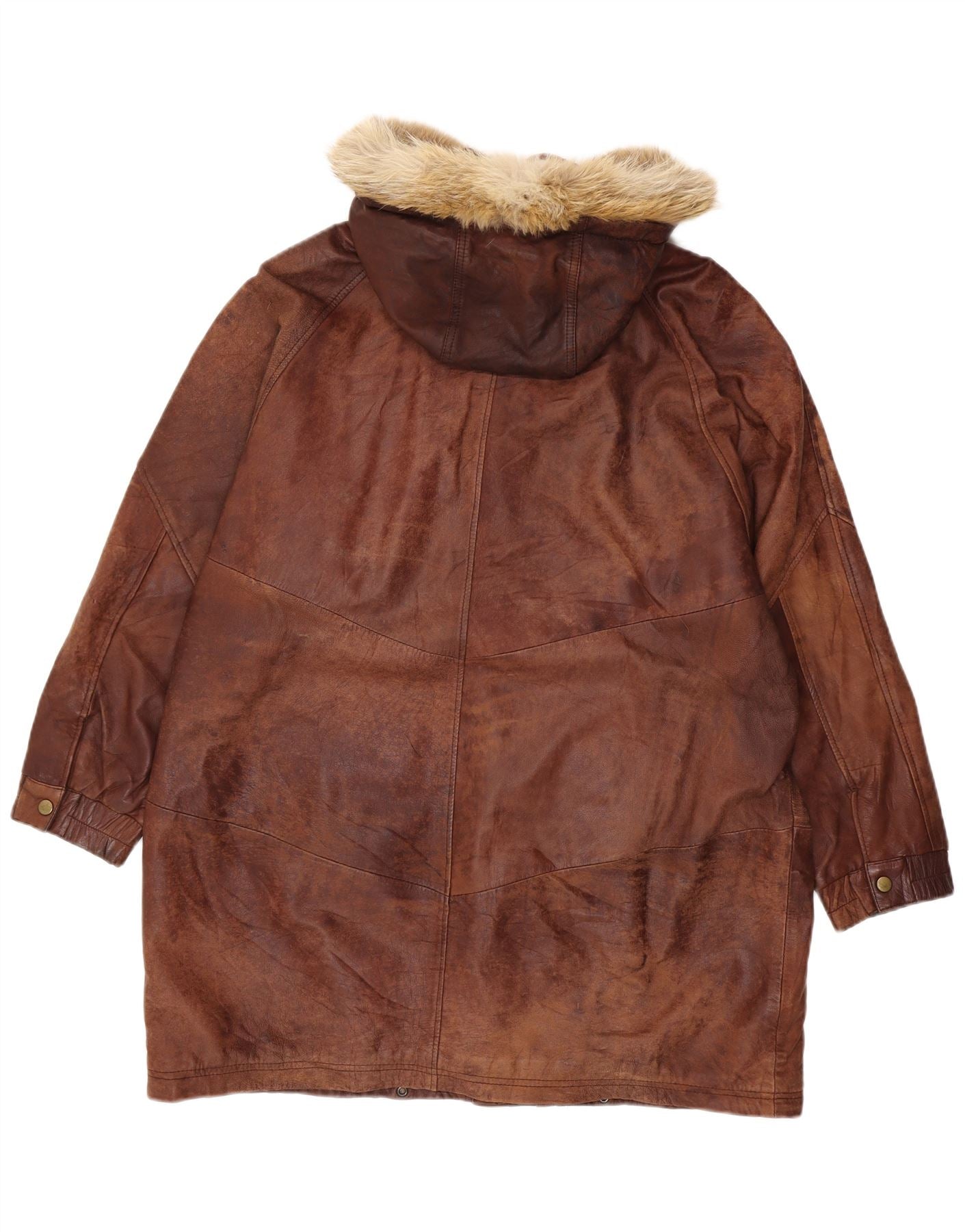 VINTAGE læderfrakke med hætte til kvinder i overstørrelse EU 44 XL brunt læder