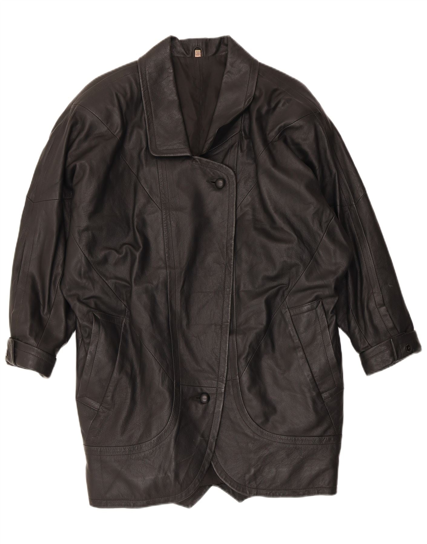 VINTAGE Oversized læderfrakke til kvinder EU 38 medium sort læder