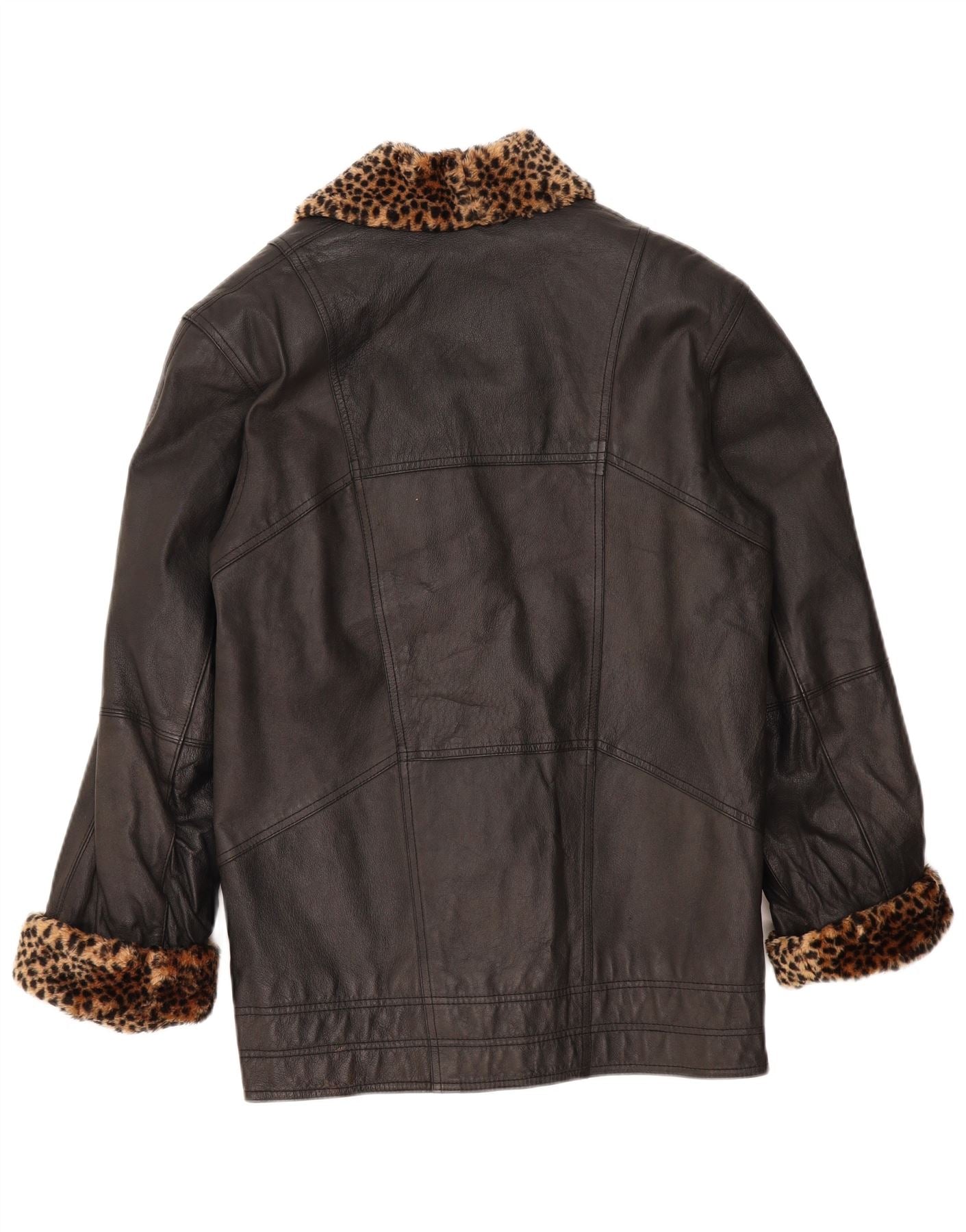 VINTAGE Oversized læderfrakke til kvinder UK 10 Small Black Animal Print
