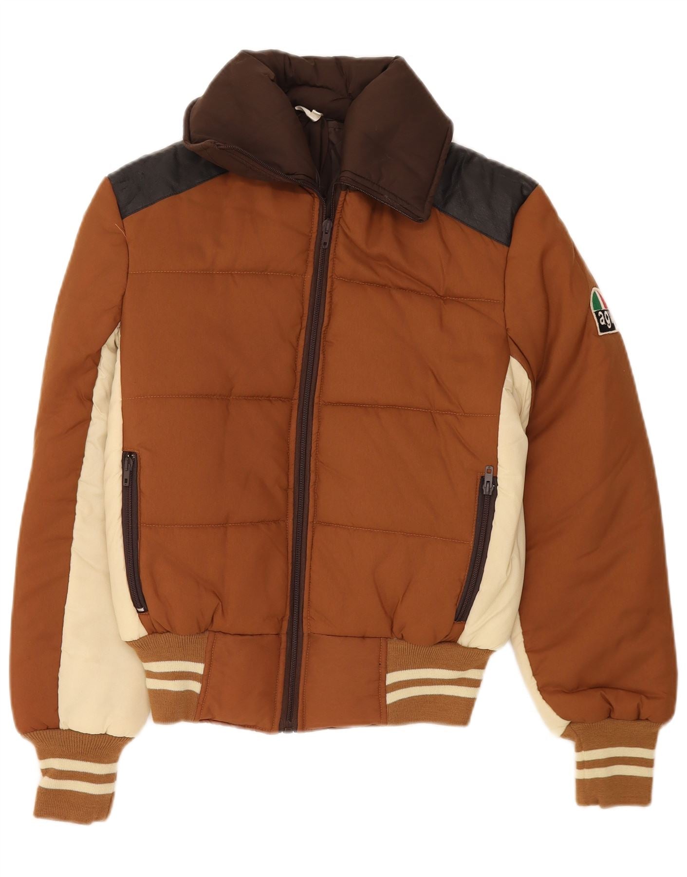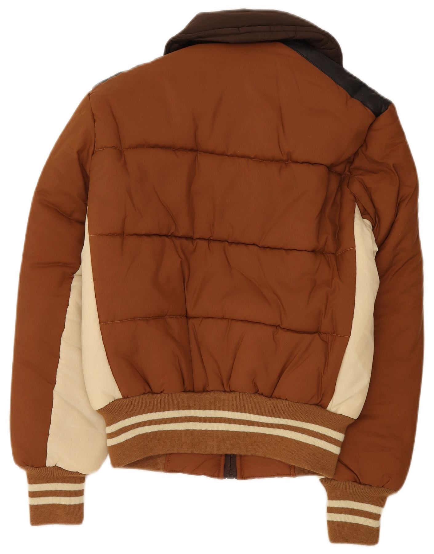 VINTAGE oversize polstret jakke til kvinder UK 10 Lille brun farveblok