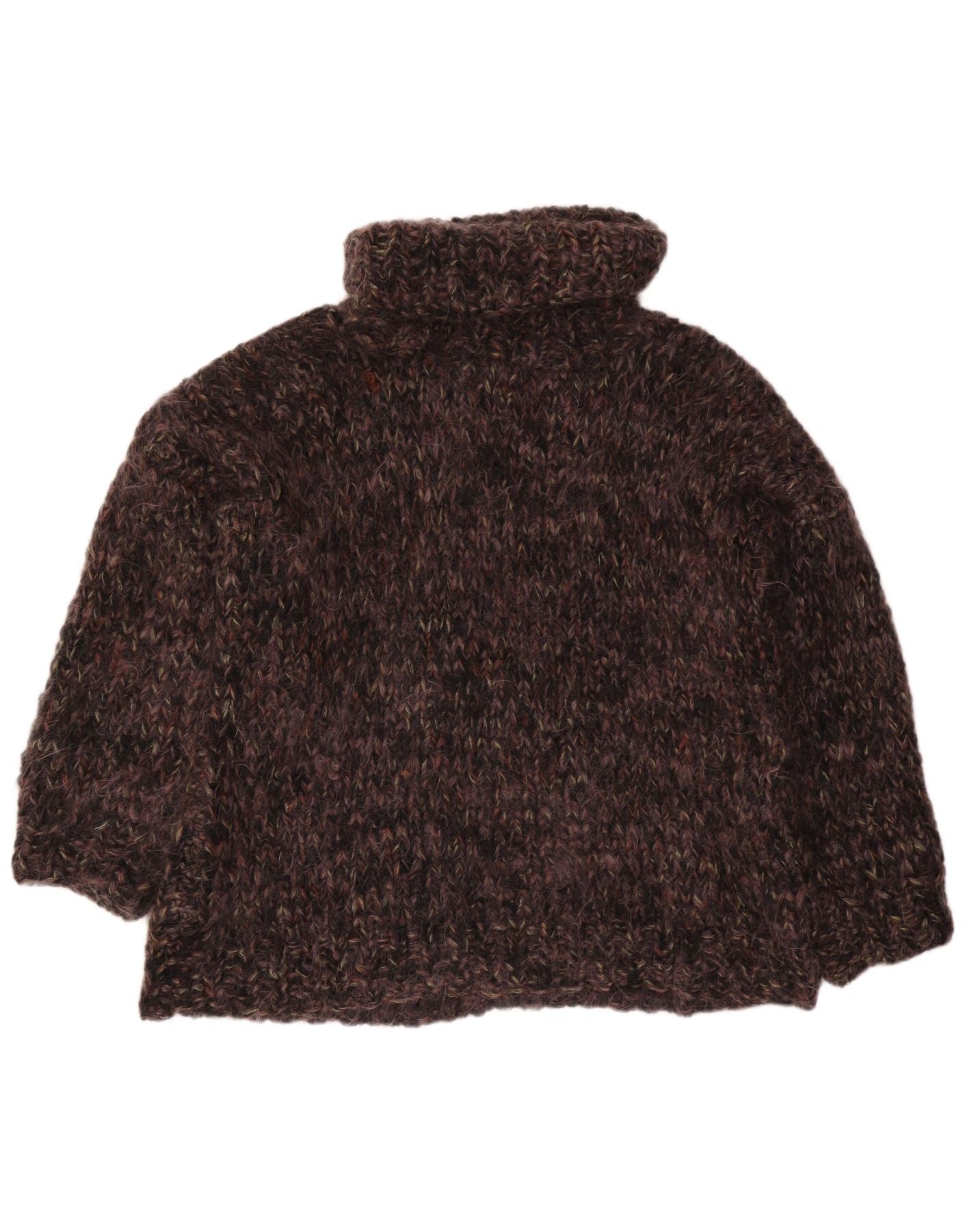 VINTAGE Dame Oversized rullehals sweater UK 22 3XL Brun Flecked