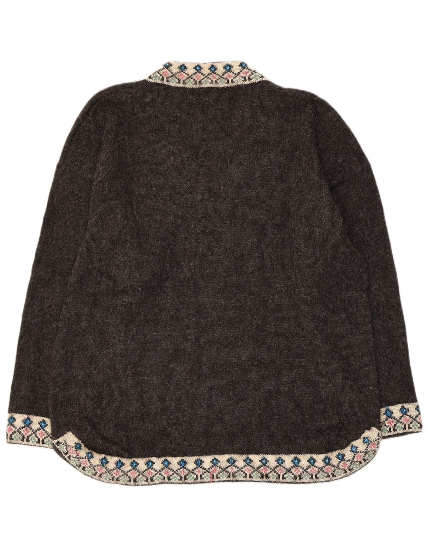 VINTAGE Dame Oversized V-hals sweater UK 18 XL Grey Fair Isle