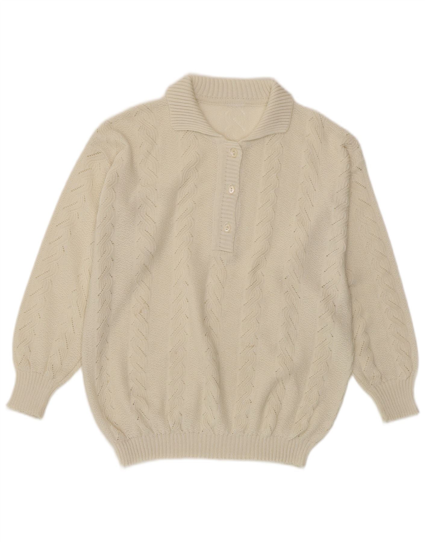 VINTAGE Dame Polo Neck Jumper Sweater UK 14 Medium Off White