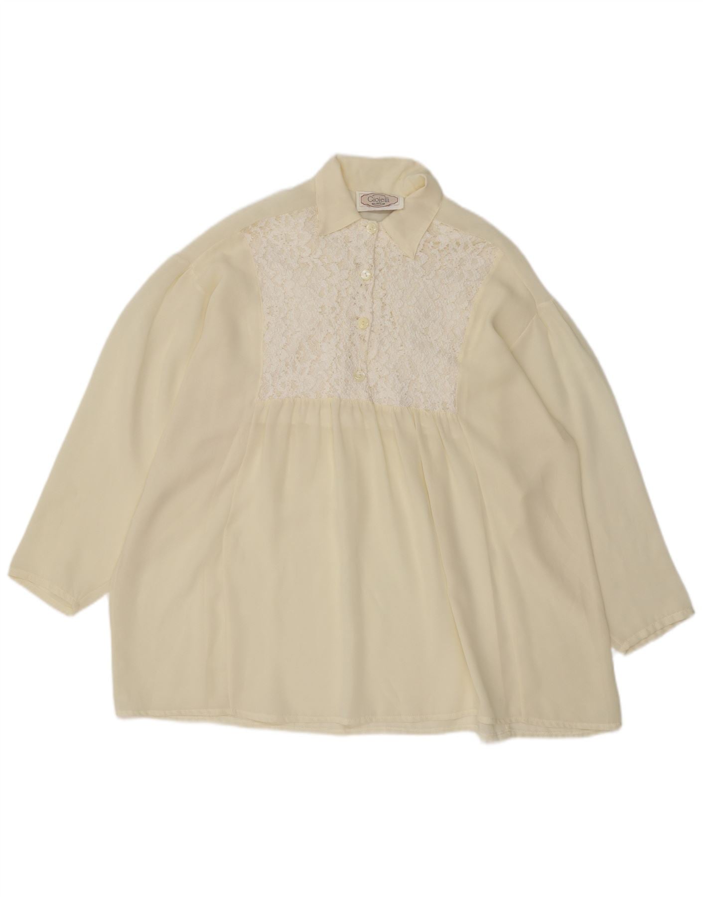 Vintage Dame Pullover Oversized skjortebluse UK 18 XL Off White Polyester