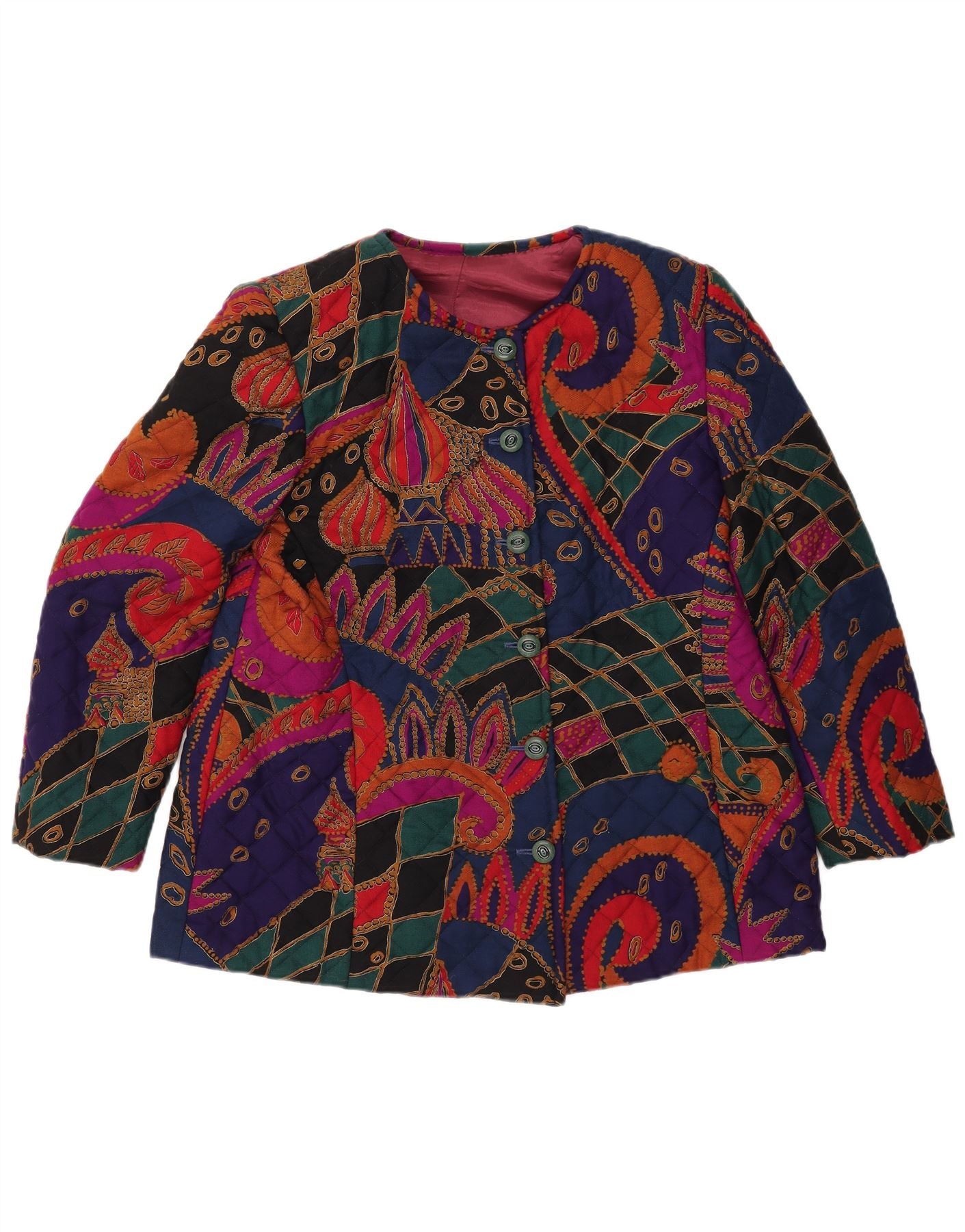 VINTAGE Quiltet jakke til kvinder UK 14 Stor flerfarvet Paisley