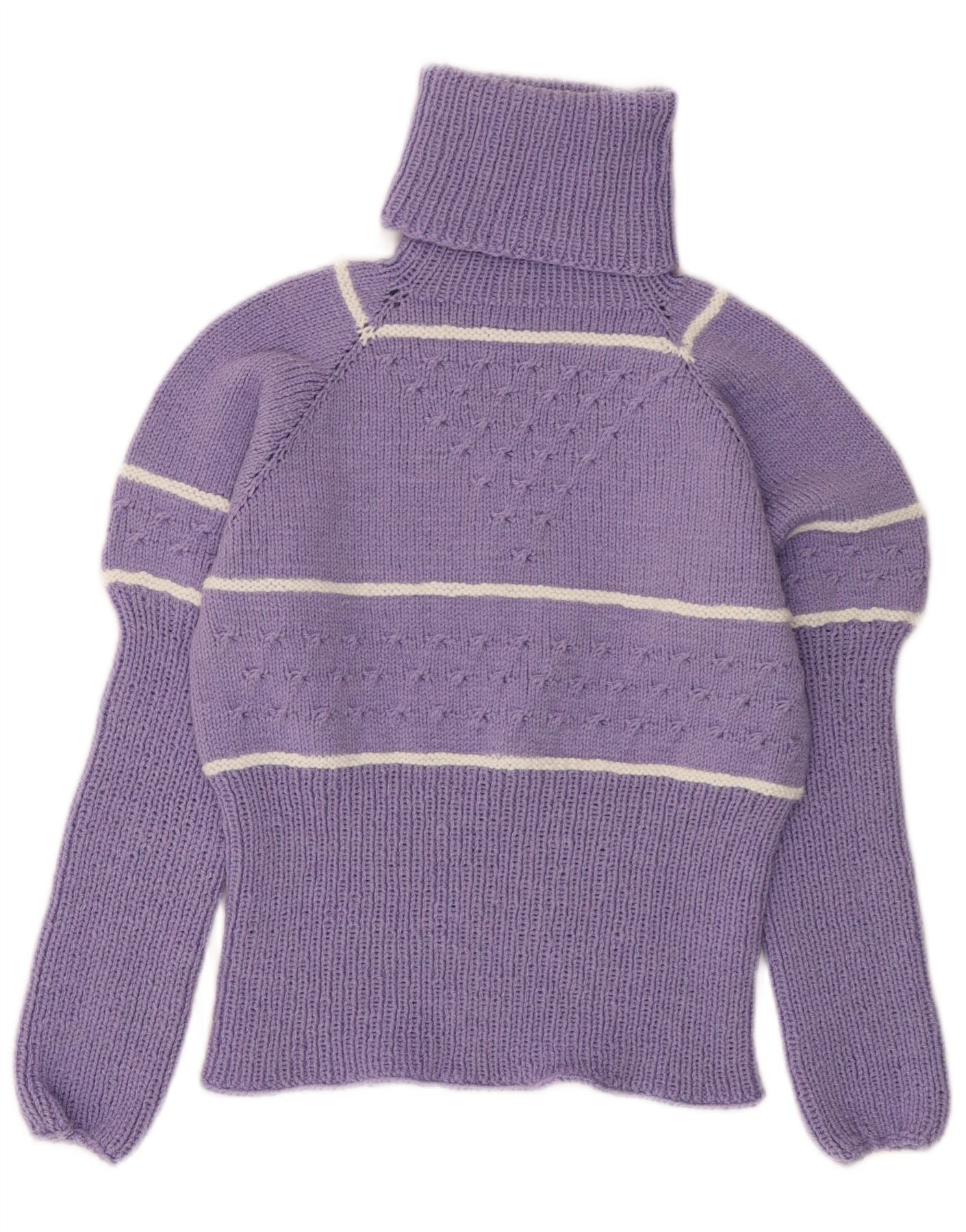 VINTAGE Dame Rullehalstrøje UK 10 Lille Lilla Stribet