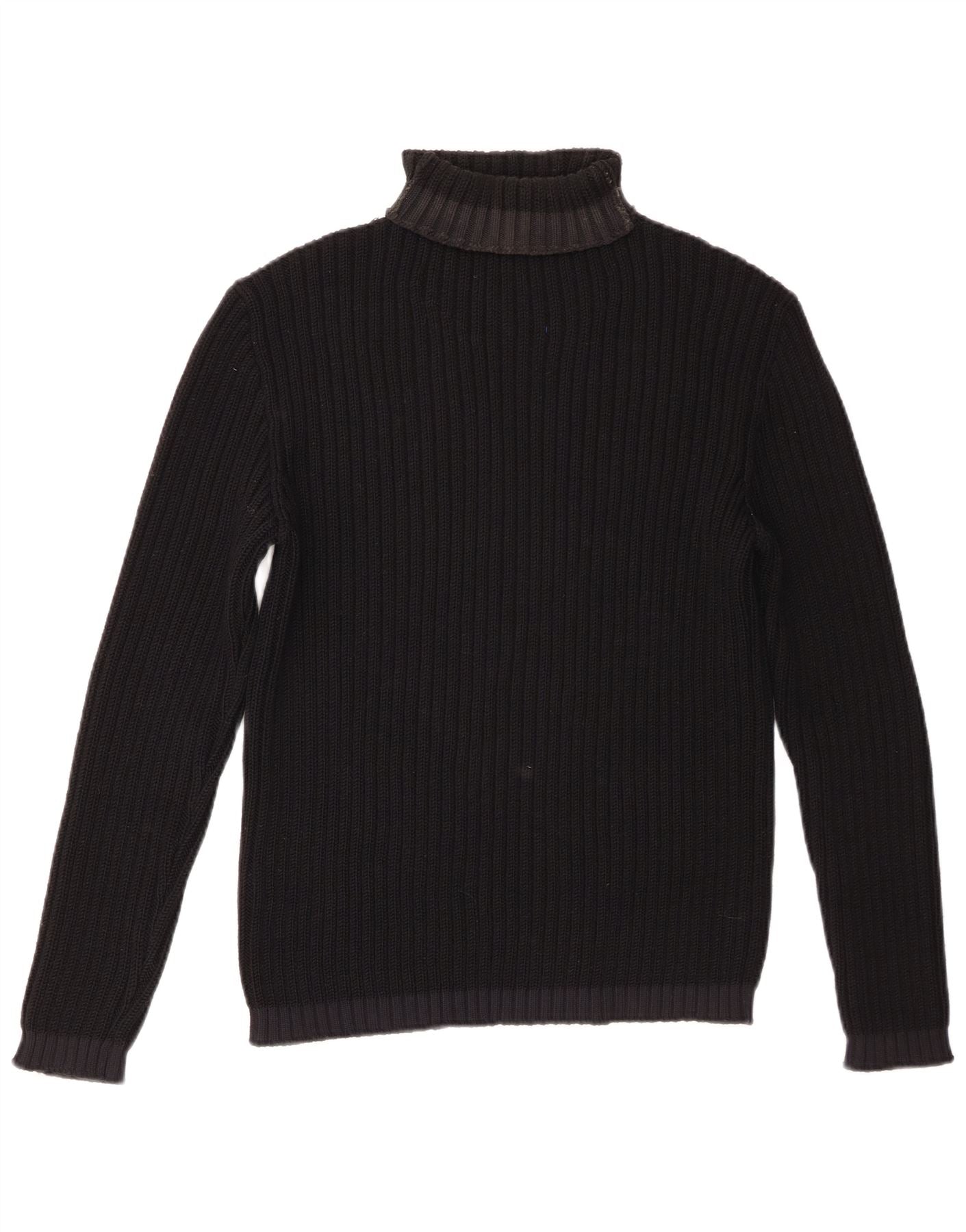 Vintage Dame Roll Neck Jumper Sweater UK 14 Large Black Merino Wool