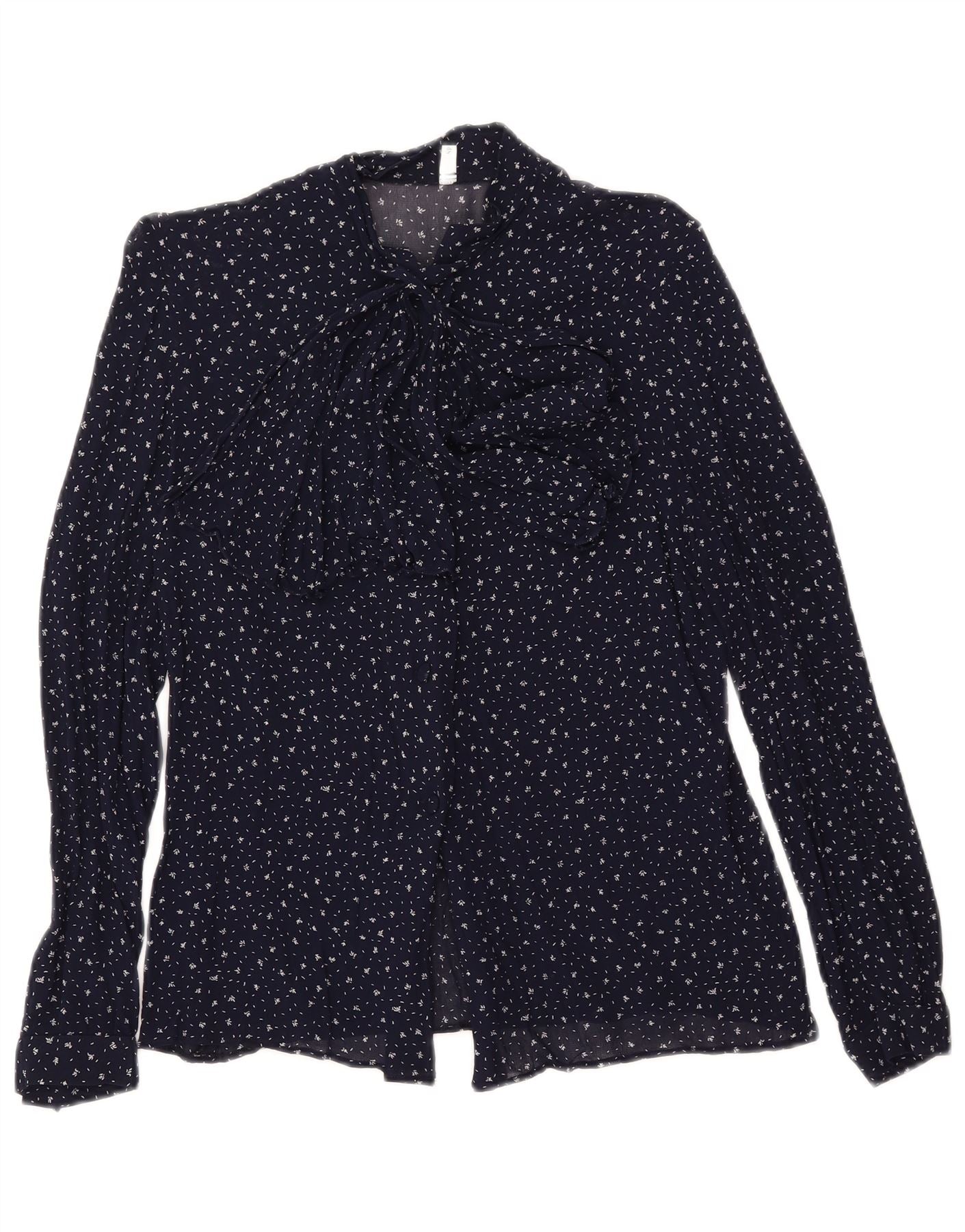 Vintage Dame Gennemsigtig Skjorte Bluse IT 48 XL Marineblå Plettet