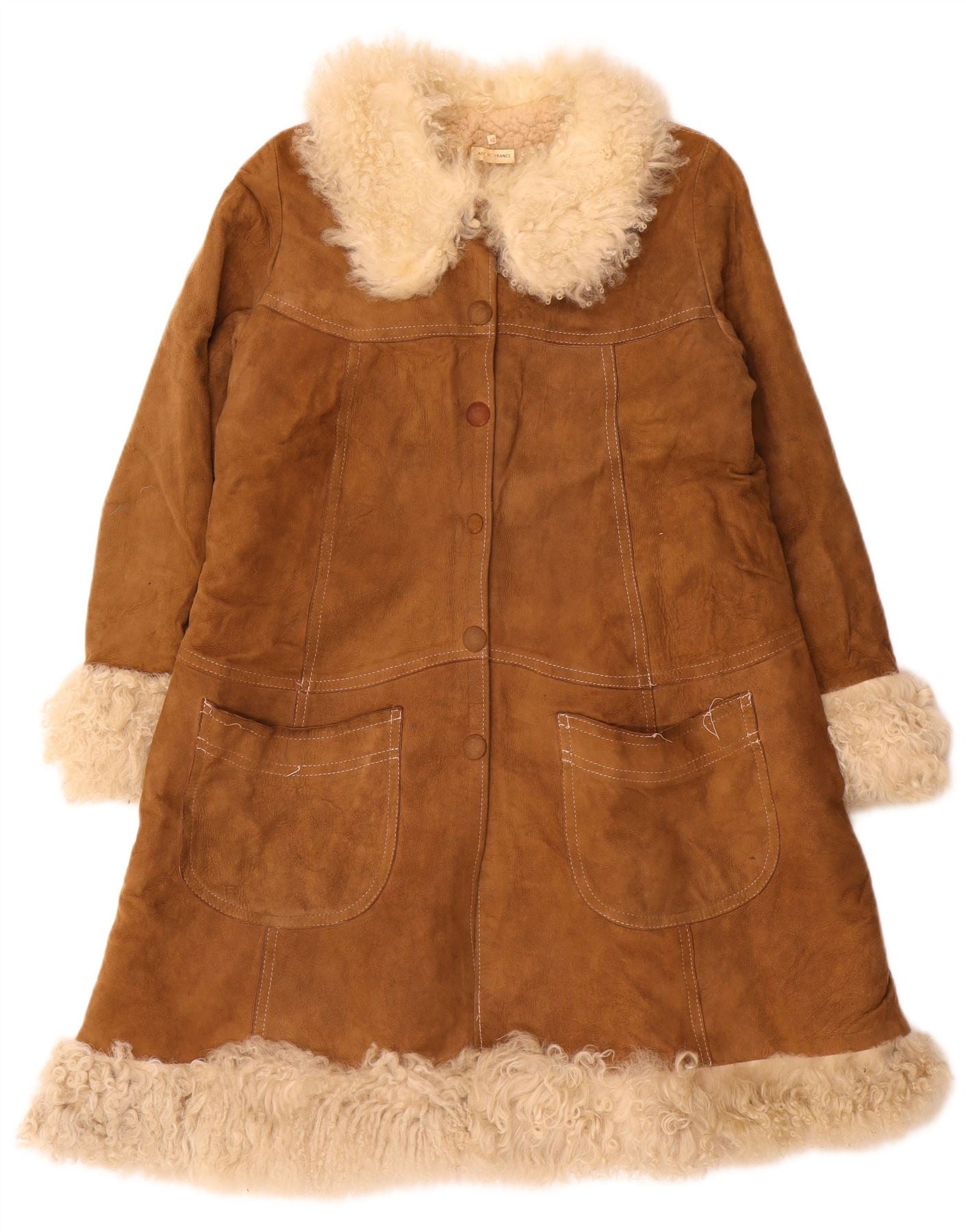 VINTAGE Shearling Coat til kvinder EU 42 Stor Brun