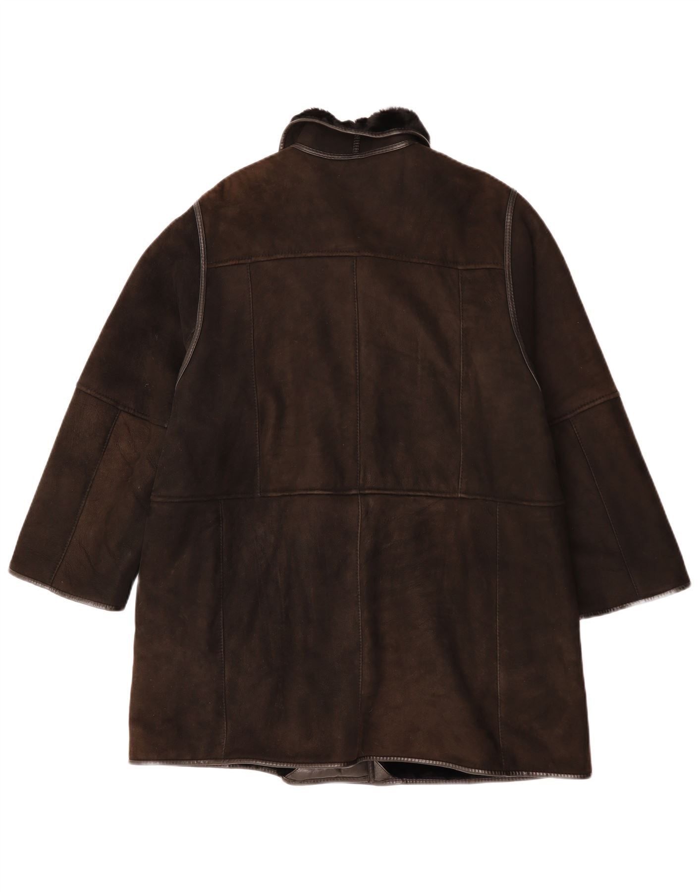 VINTAGE Dame Shearling Coat UK 14 Stor brunt læder