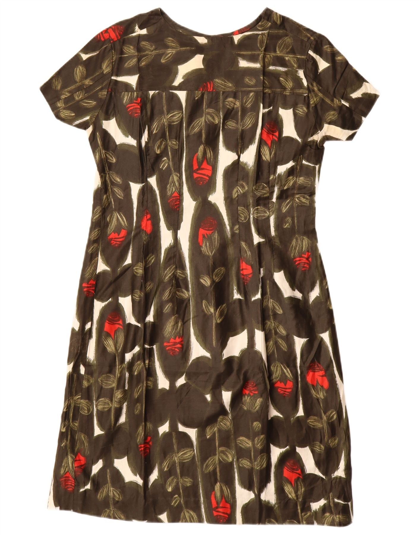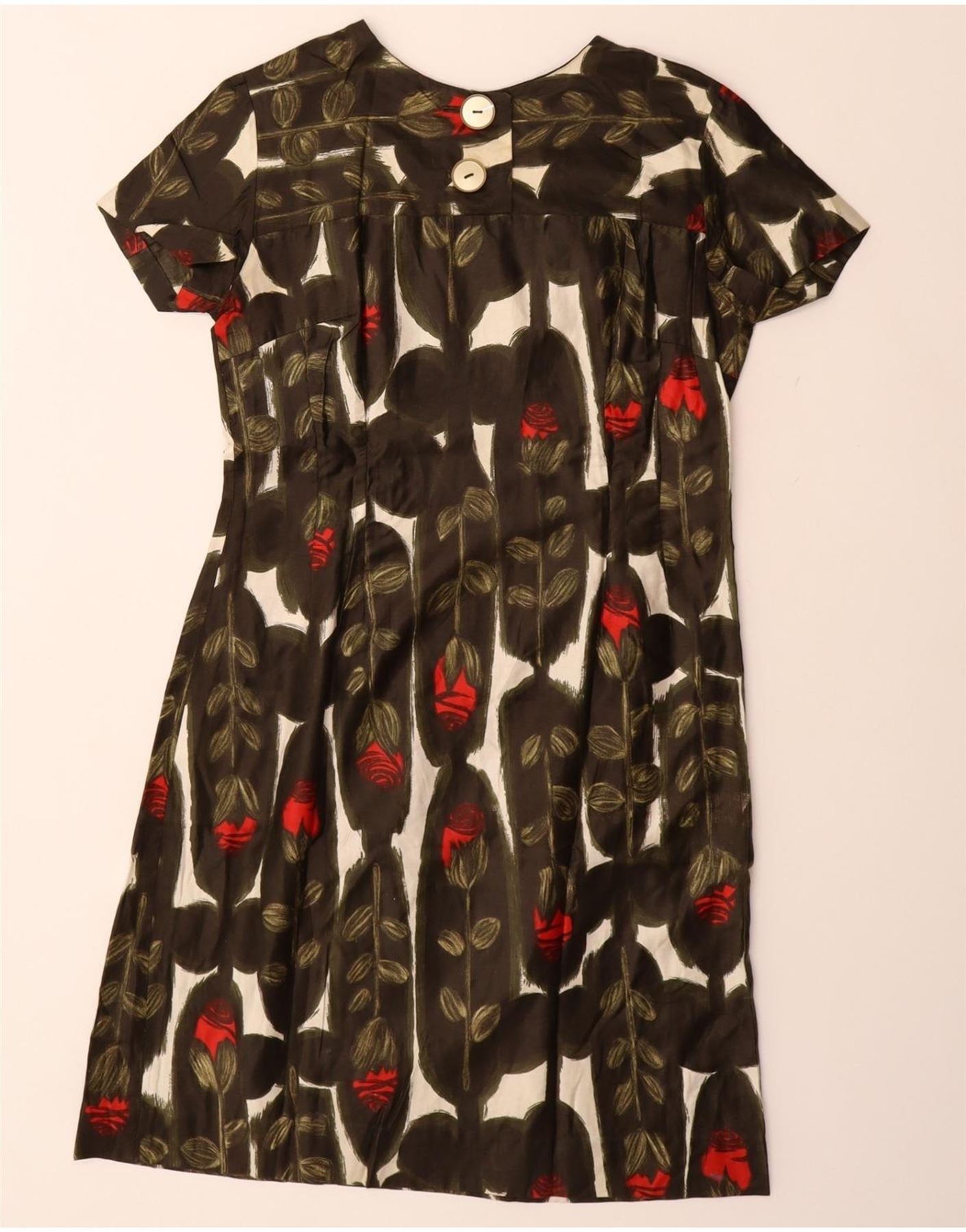VINTAGE Kvinders Skedekjole UK 12 Medium Brown Floral