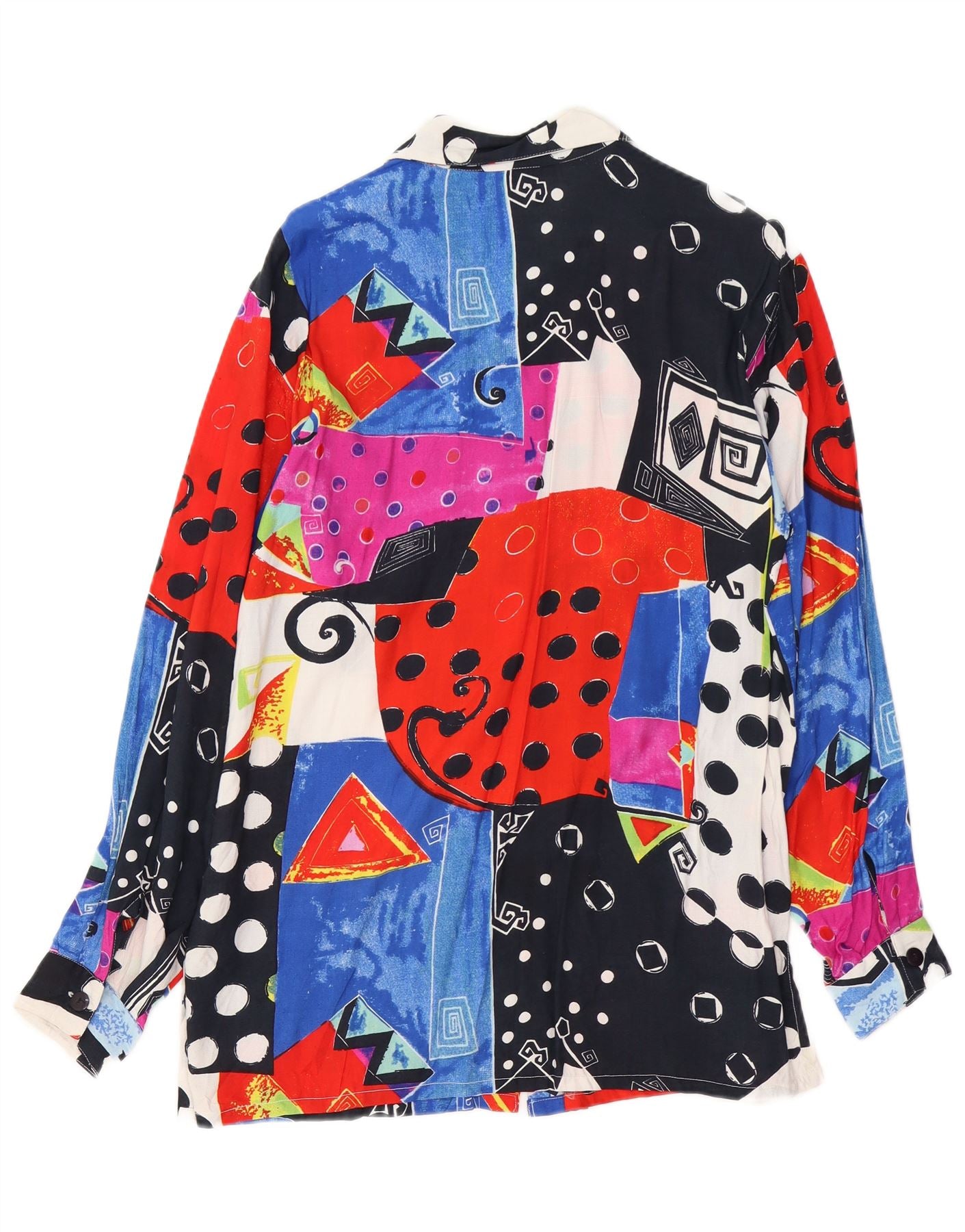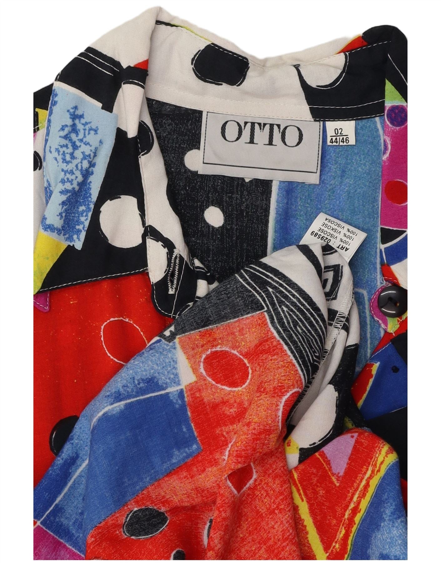VINTAGE Dameskjortebluse EU 44/46 XL Flerfarvet Patchwork Viscose