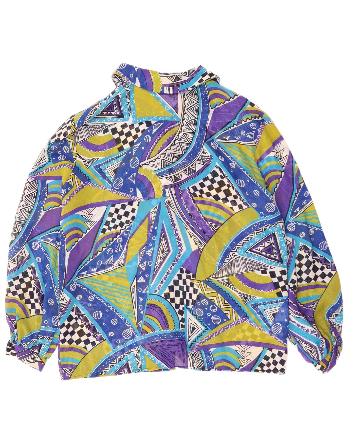 VINTAGE skjortebluse til kvinder IT 42 Mellemblå geometrisk polyester