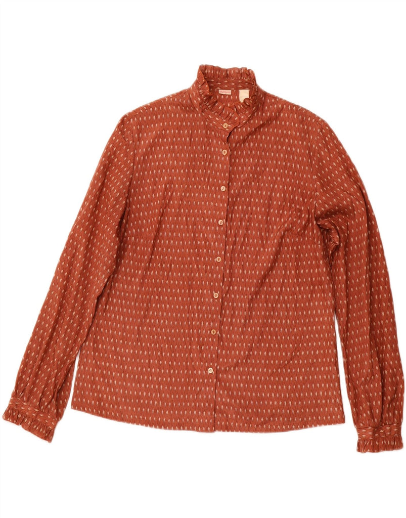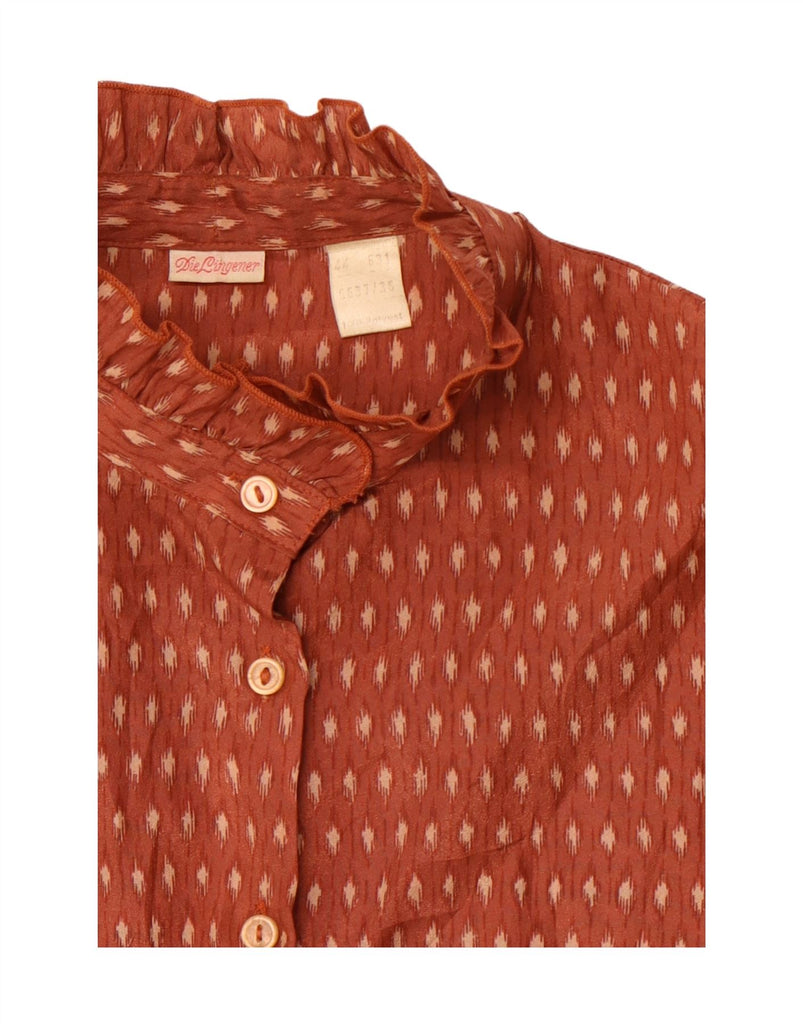 VINTAGE Womens Shirt Blouse IT 44 Medium Brown Spotted Polyester