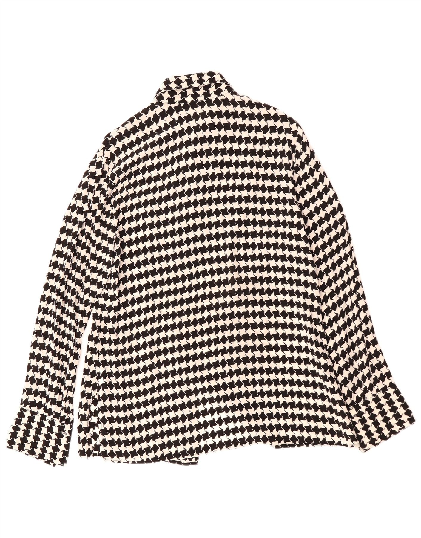 VINTAGE skjortebluse til kvinder IT 46 Stor sort Houndstooth Viscose