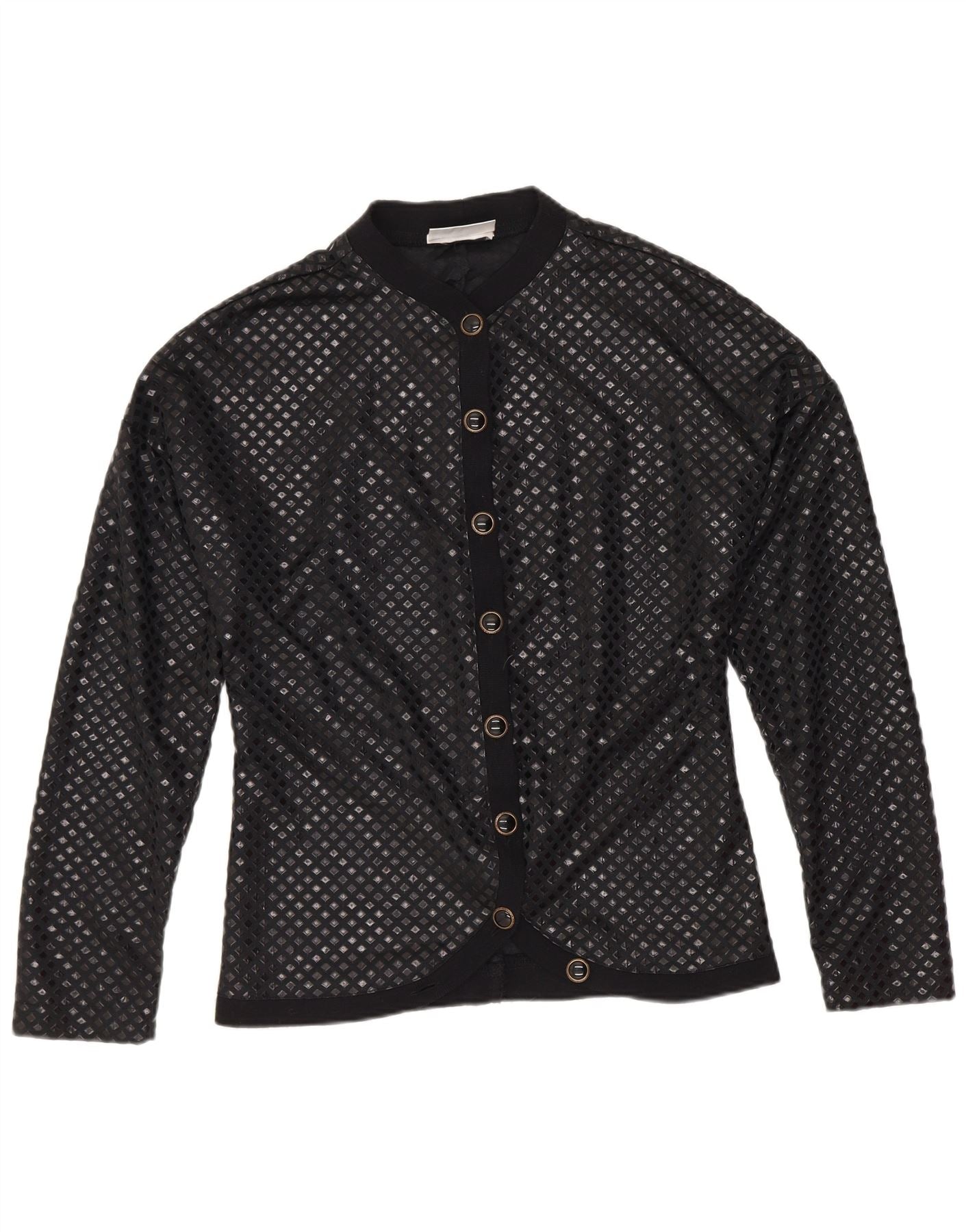 Vintage dameskjortebluse UK 12 Medium Sort geometrisk polyamid