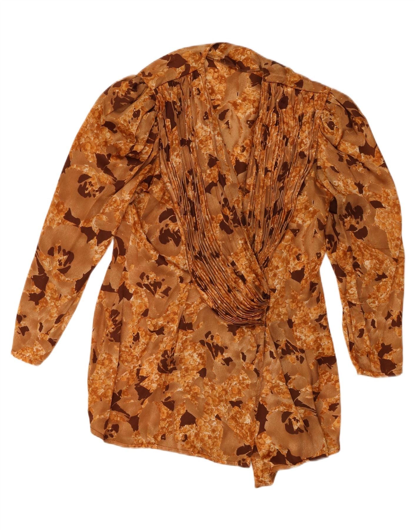 Vintage dameskjortebluse UK 16 Large Beige Floral Polyester