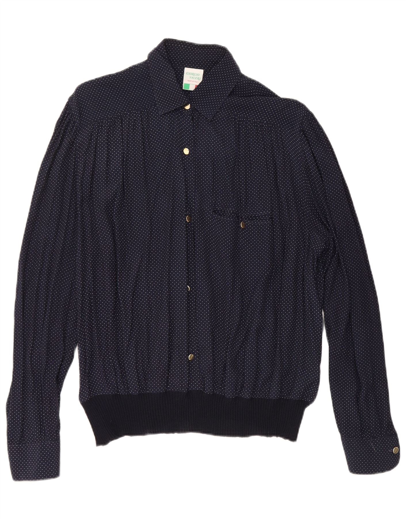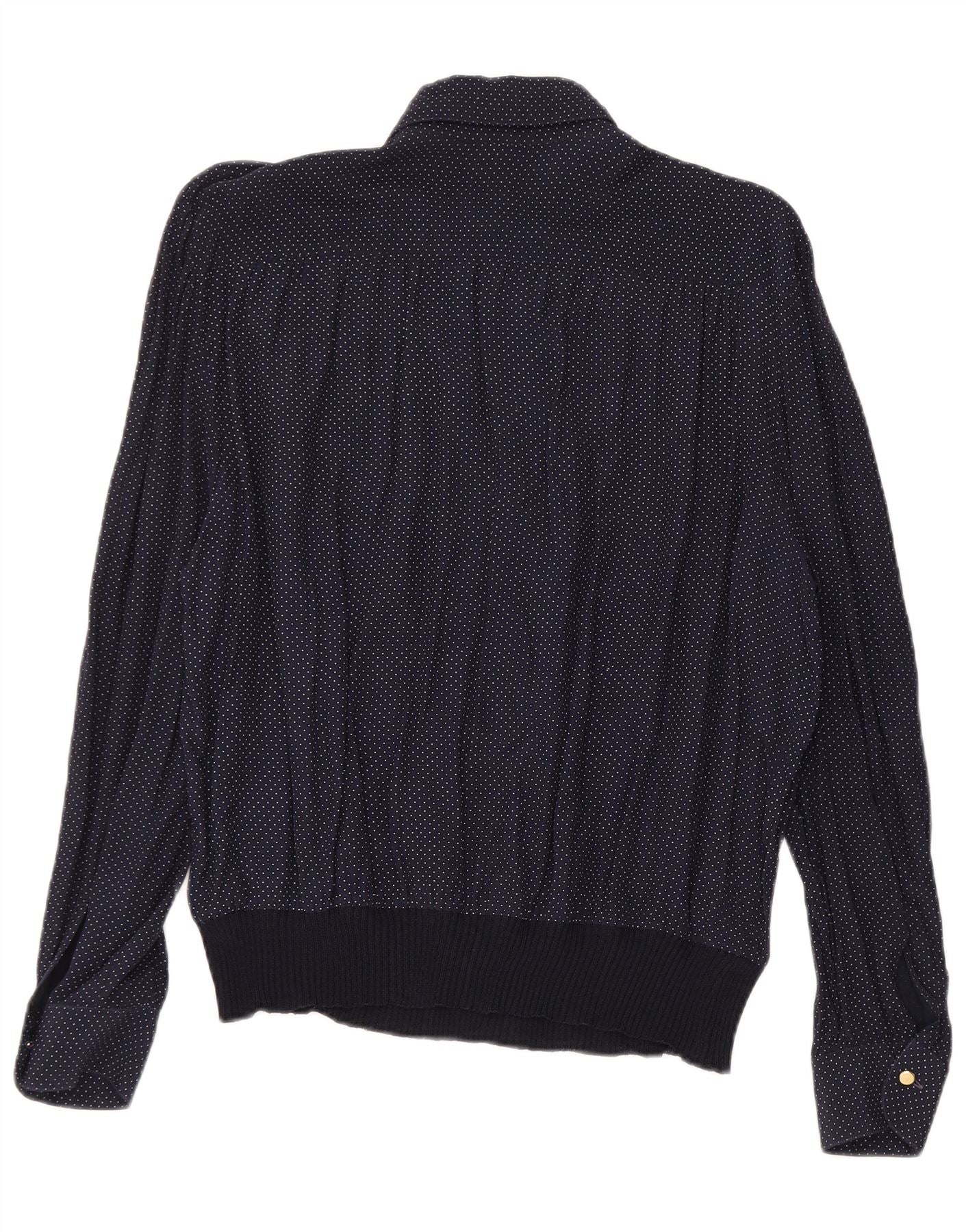 VINTAGE skjortebluse til kvinder UK 16 Stor marineblå plettet viskose