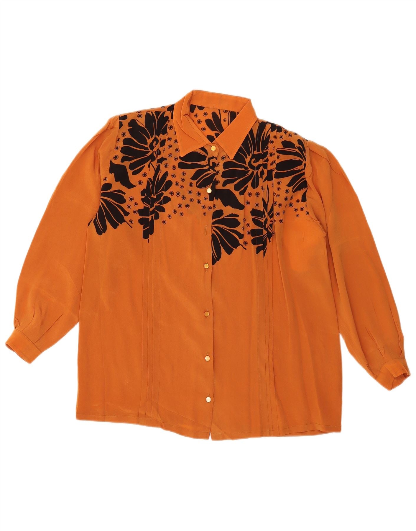 VINTAGE Dame skjortebluse UK 16 Large Orange Floral