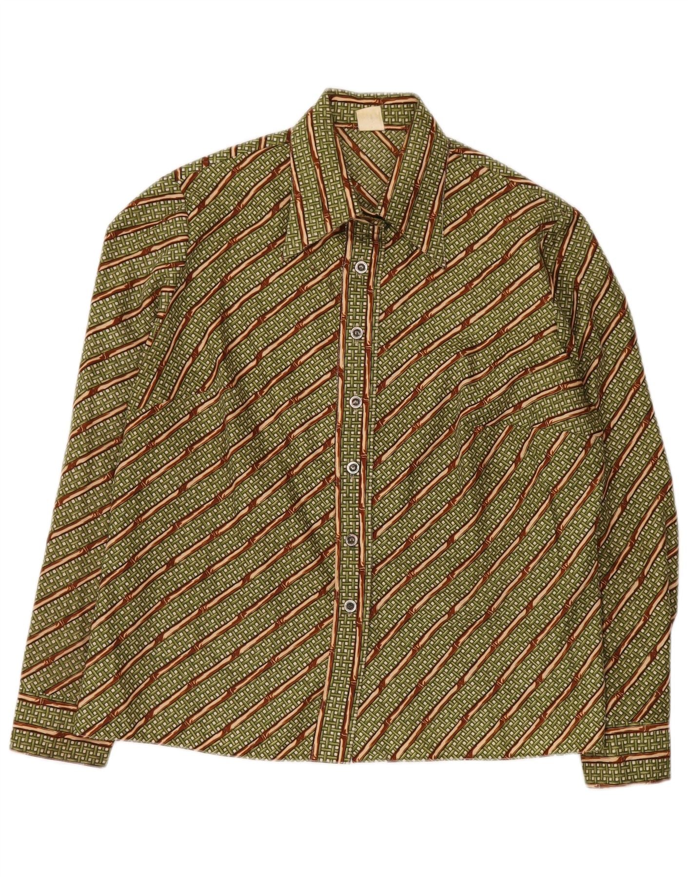 VINTAGE Dameskjorte UK 12 Medium Grøn Geometrisk Polyester