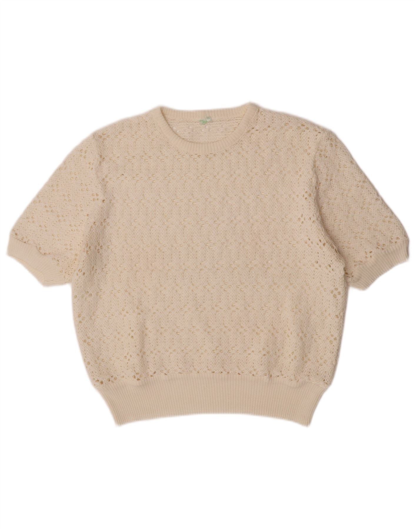 Vintage Kvinders Kortærmede Jumper Sweater UK 12 Medium Off White
