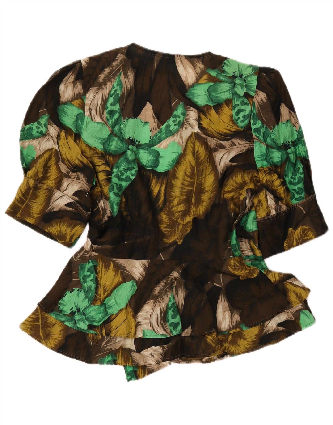 VINTAGE Kortærmet skjortebluse til kvinder IT 42 Medium Khaki Floral