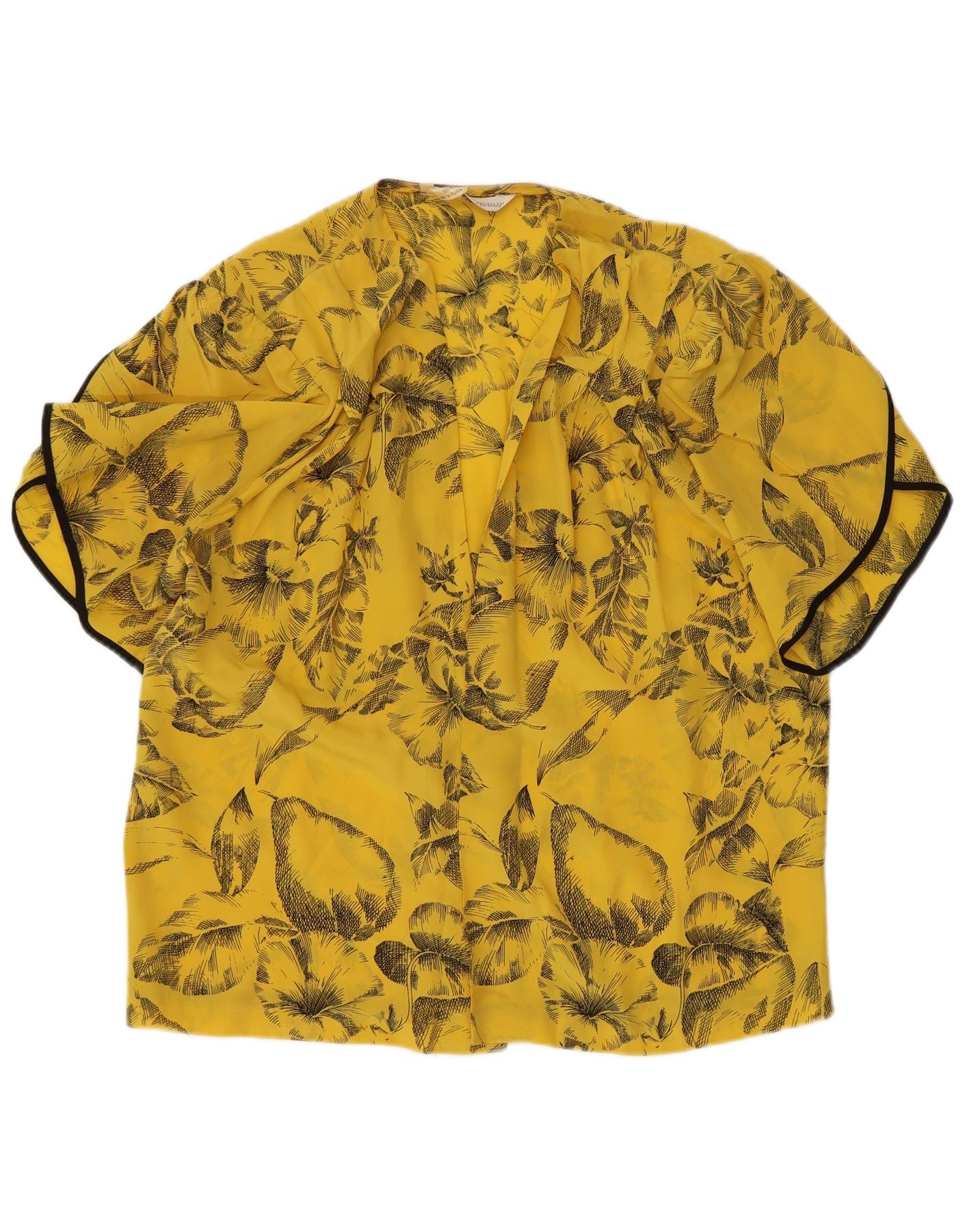Vintage kortærmet skjortebluse til kvinder IT 42 Medium Yellow Floral Silke