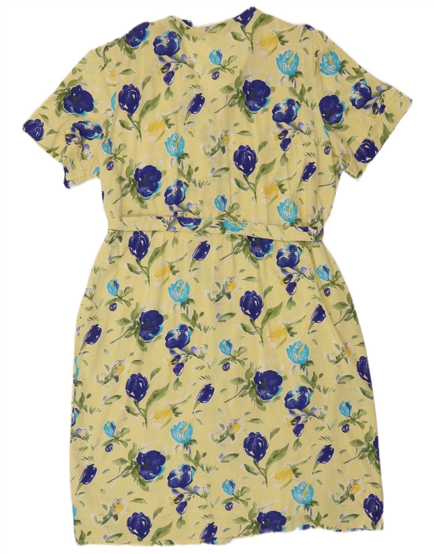 VINTAGE Kortærmet skjortekjole til kvinder UK 18 XL Gul blomsterbomuld