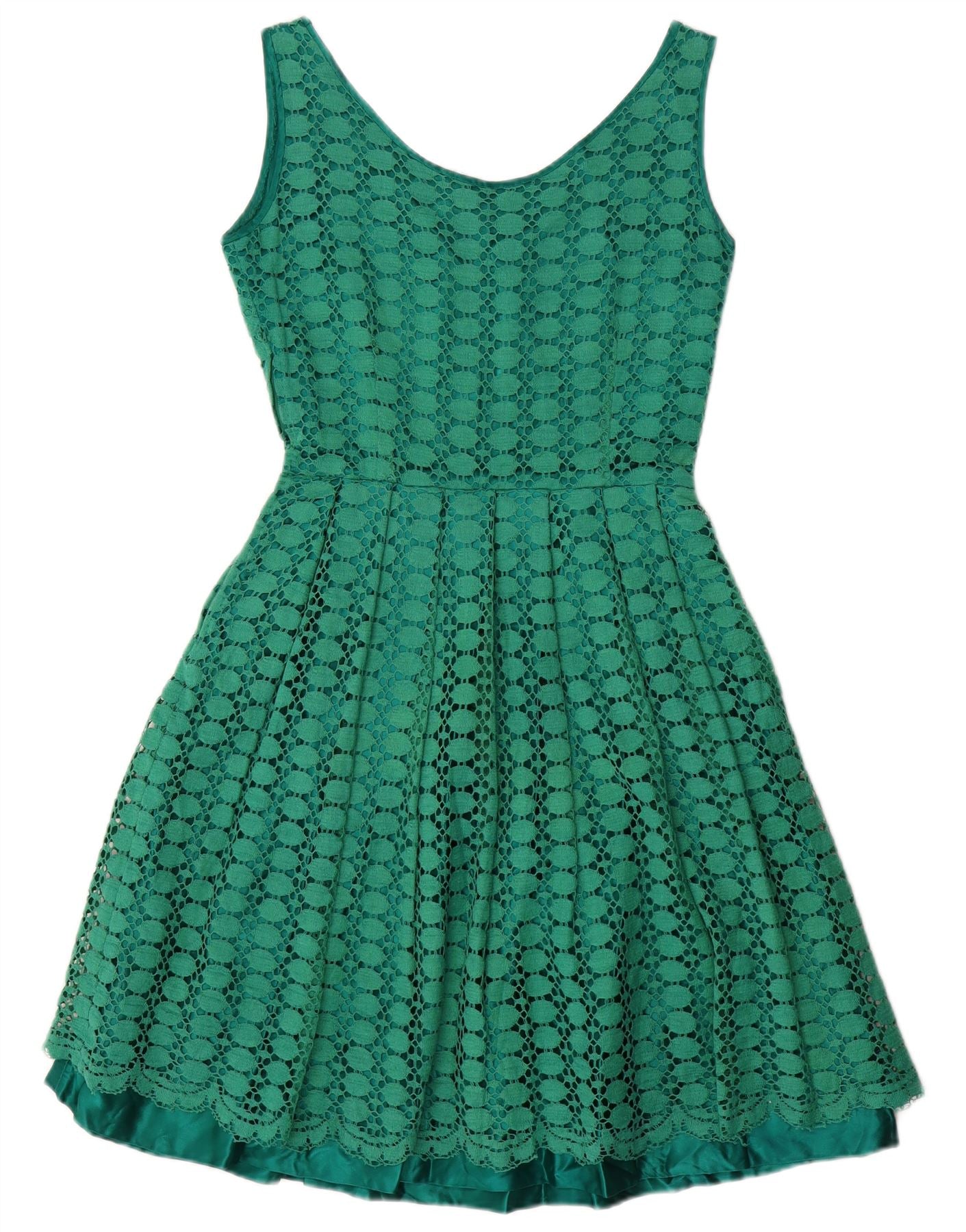 VINTAGE Dame Ærmeløs A-Line Kjole UK 10 Lille Grøn