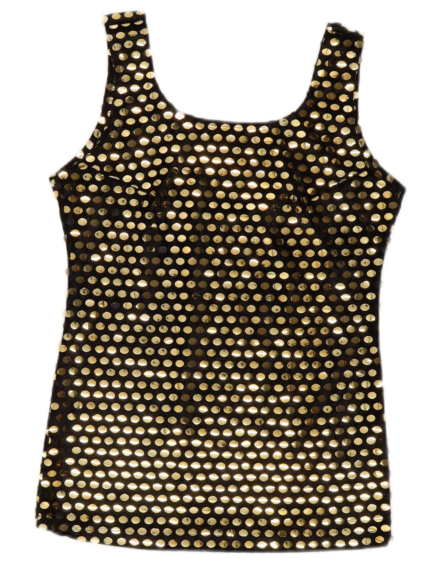 Vintage Dame ærmeløs bluse Top UK 10 Small Black Polyester