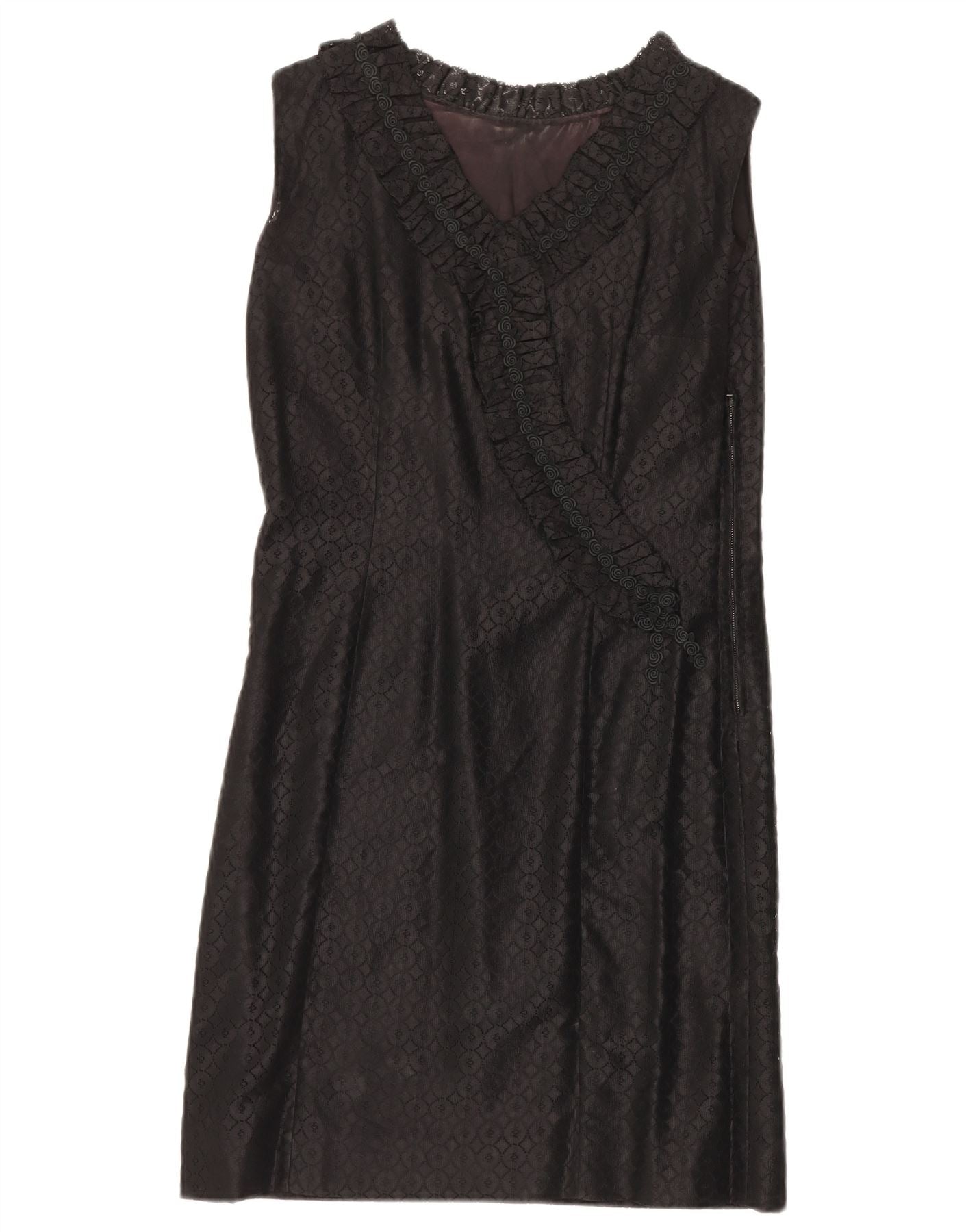 VINTAGE Dame Ærmeløs Lace Shift Dress UK 12 Medium Black Floral