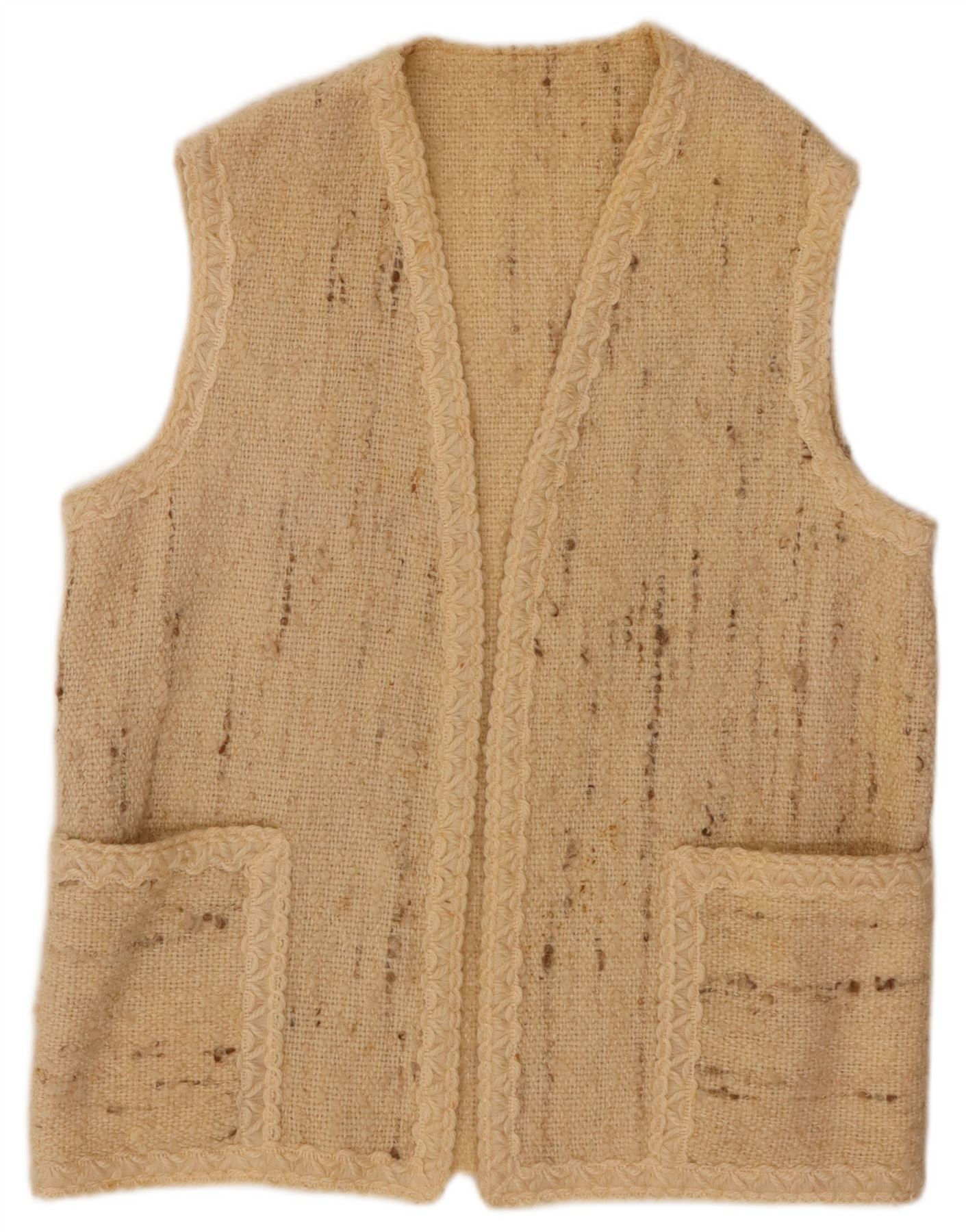 VINTAGE Dame ærmeløs åben cardigan sweater UK 16 Large Beige Flecked