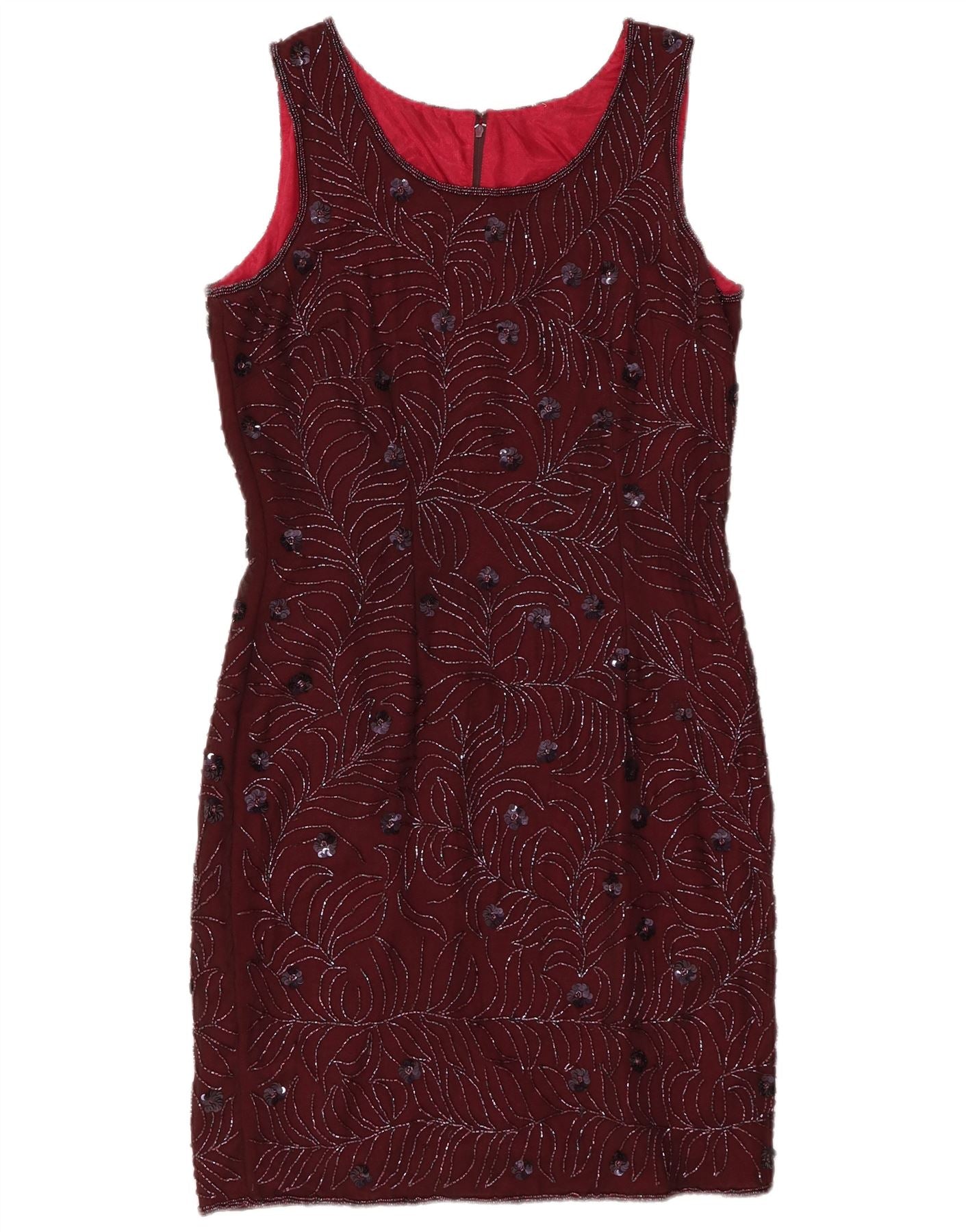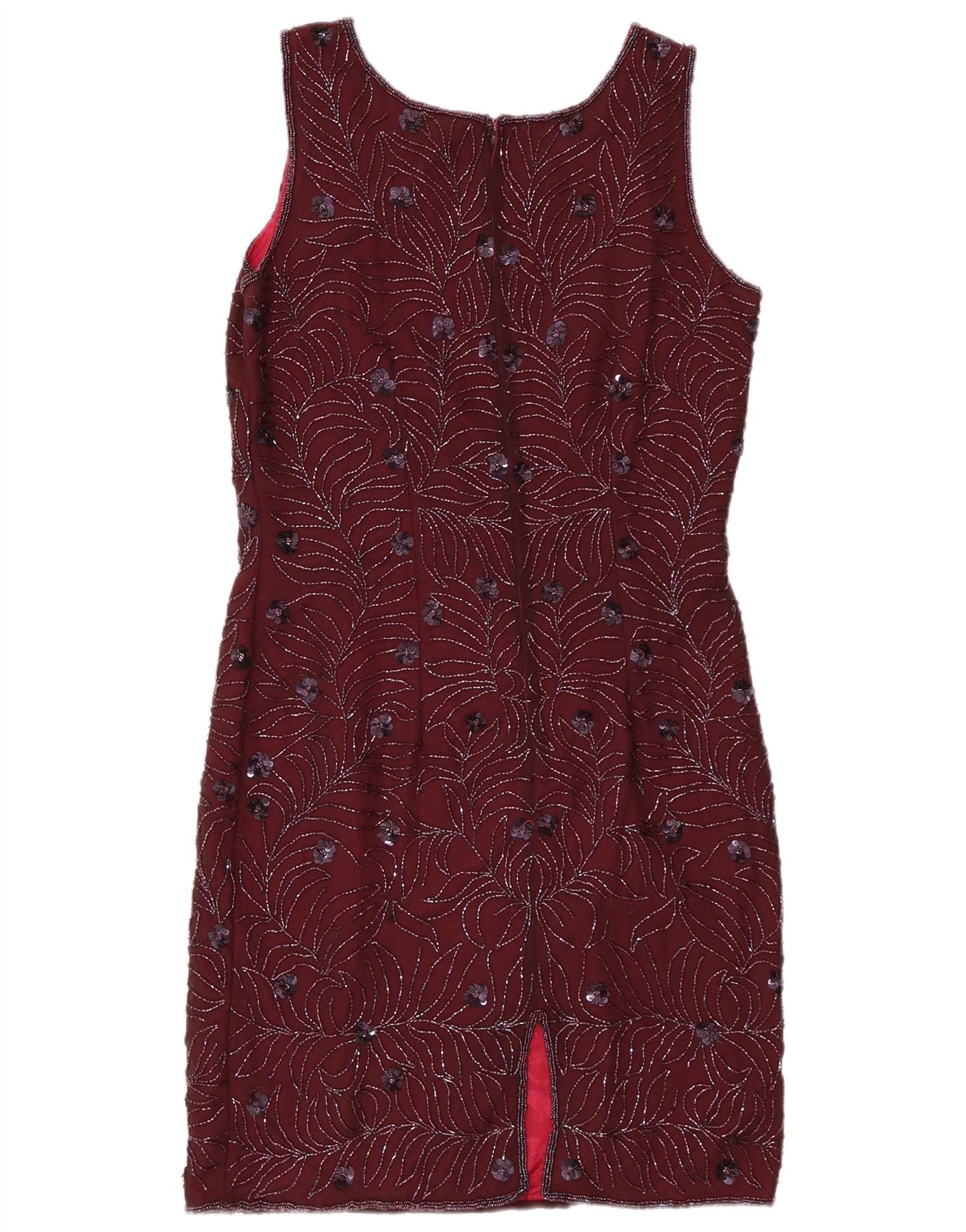 VINTAGE Kvinders Ærmeløs Skede Kjole UK 12 Medium Burgundy Floral