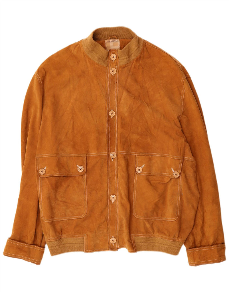 VINTAGE Womens Suede Bomber Jacket IT 58 5XL Brown Leather