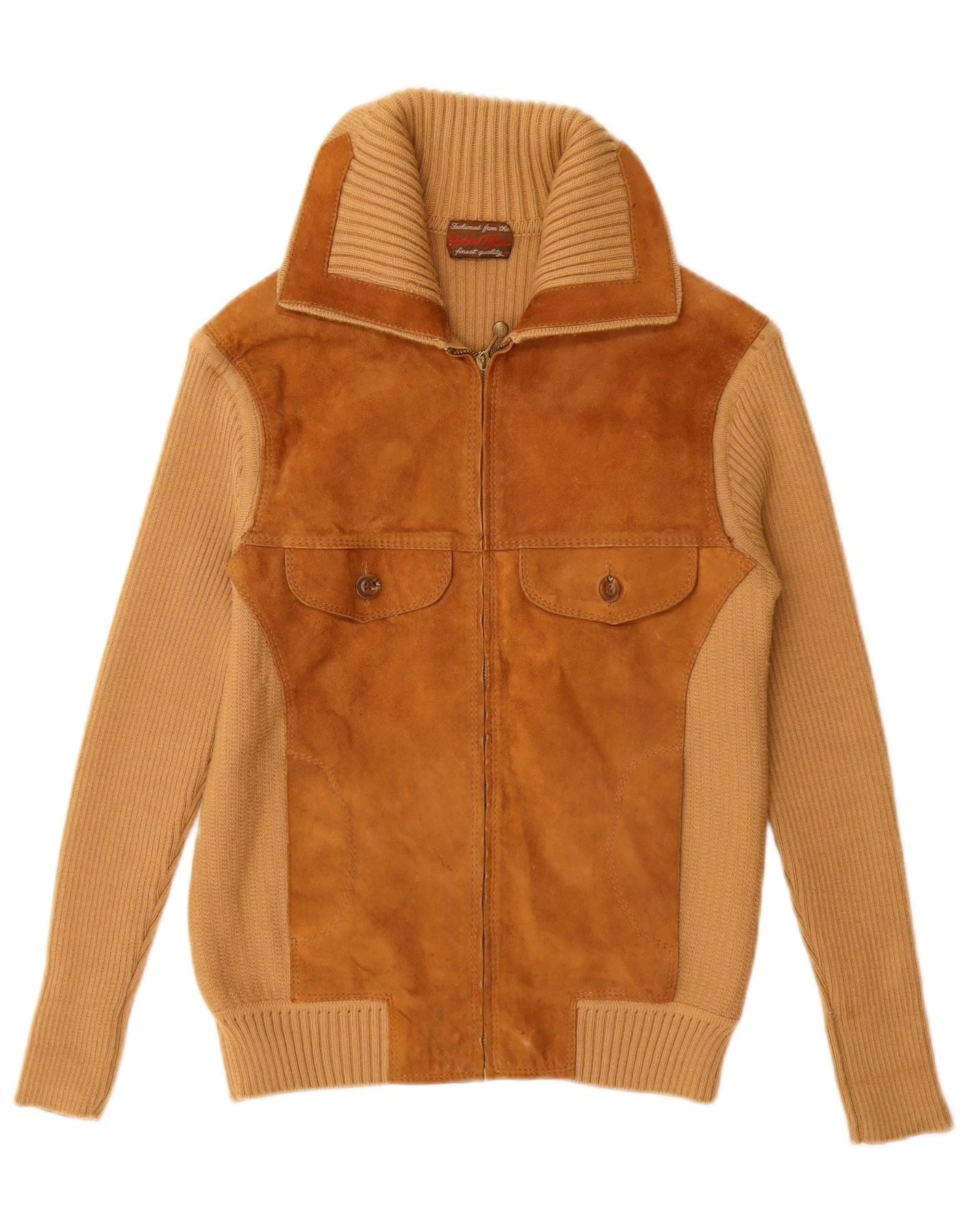 VINTAGE Dame Ruskind Cardigan Sweater UK 12 Medium Beige Colourblock