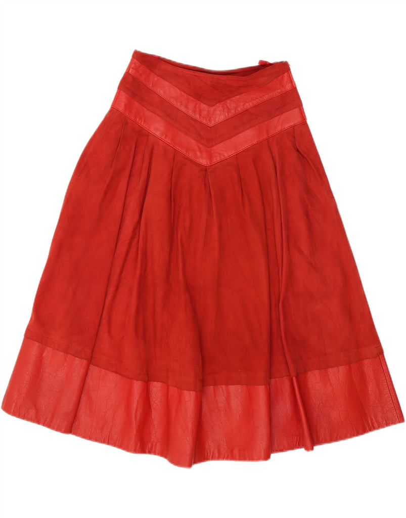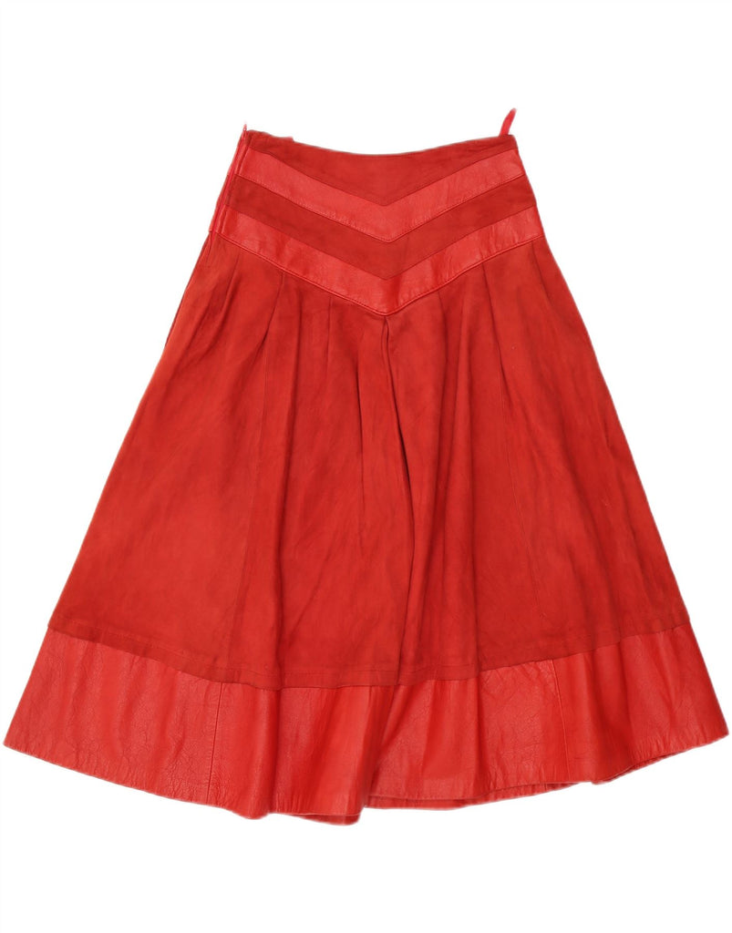 VINTAGE Womens Suede Flared Skirt W26 Small Red Colourblock