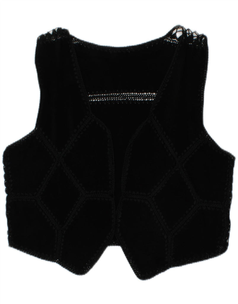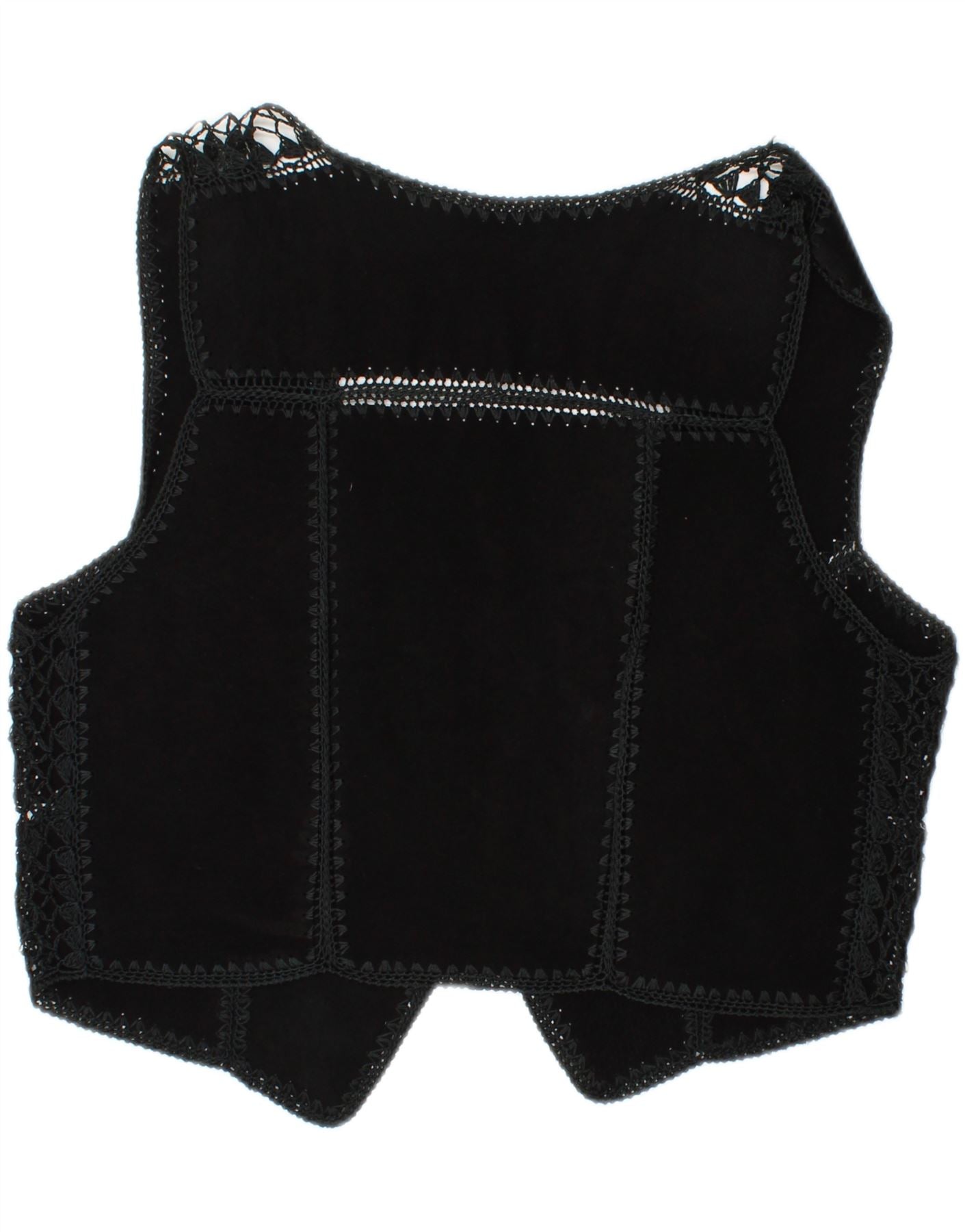 VINTAGE Womens Suede Waistcoat UK 12 Medium Black Argyle/Diamond