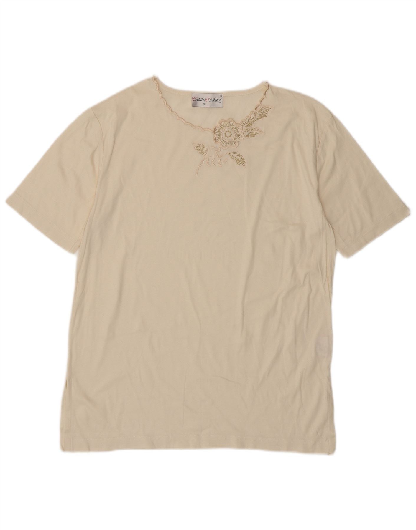 VINTAGE T-shirt top til kvinder EU 38 Medium Off White Blomsterbomuld