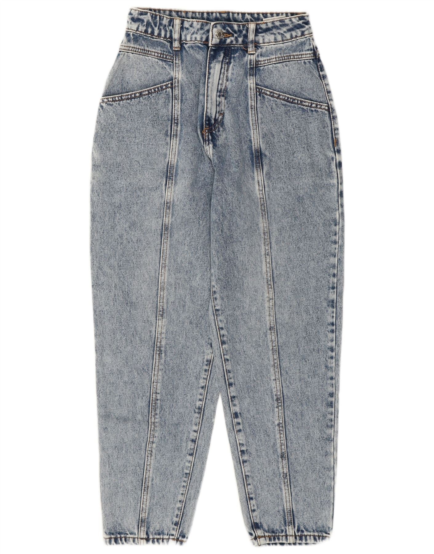 VINTAGE Kvinder tilspidsede højtaljede jeans UK 6 XS W25 L25 Blå Bomuld