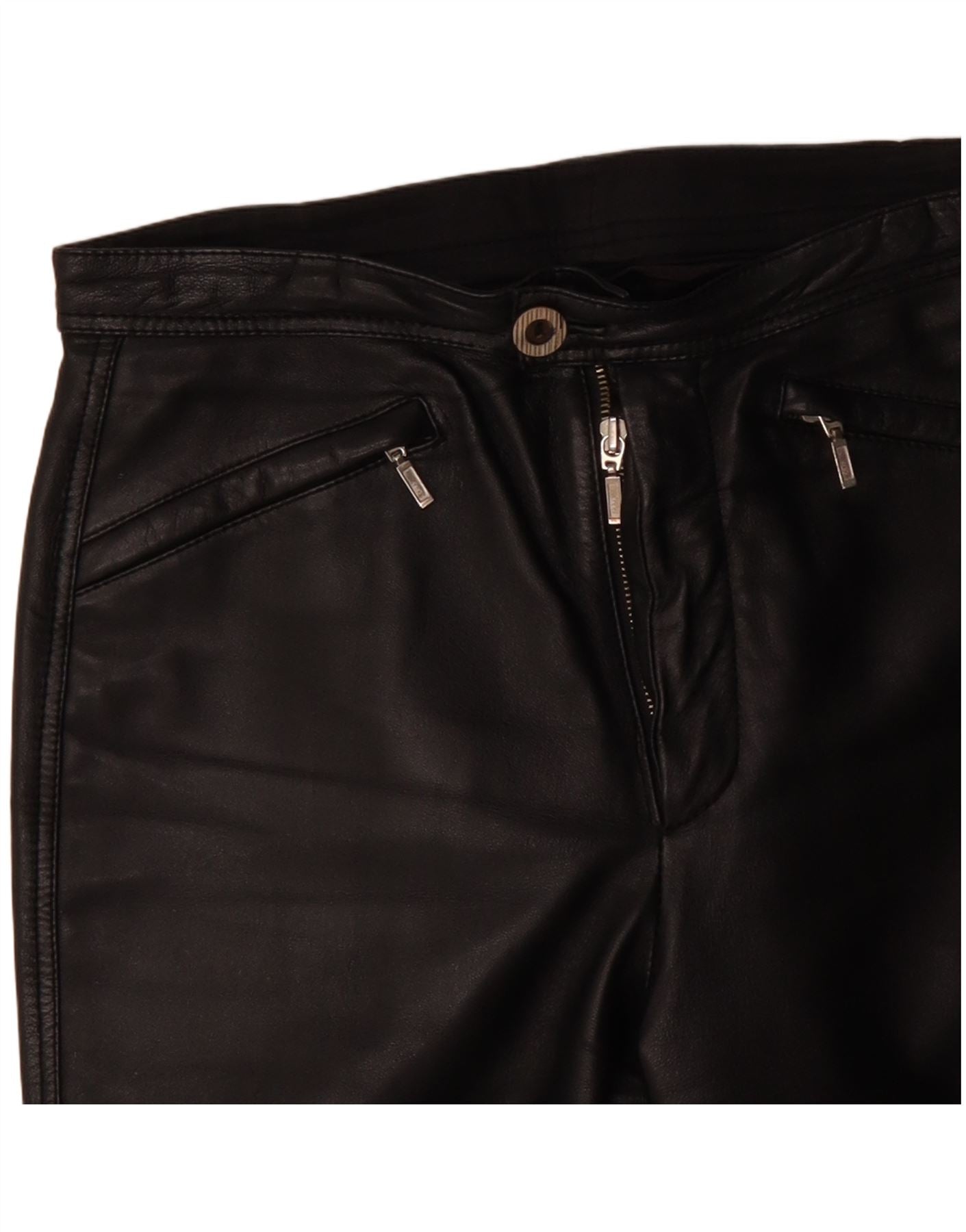 VINTAGE koniske læderbukser til kvinder EU 38 Medium W30 L29 sort læder