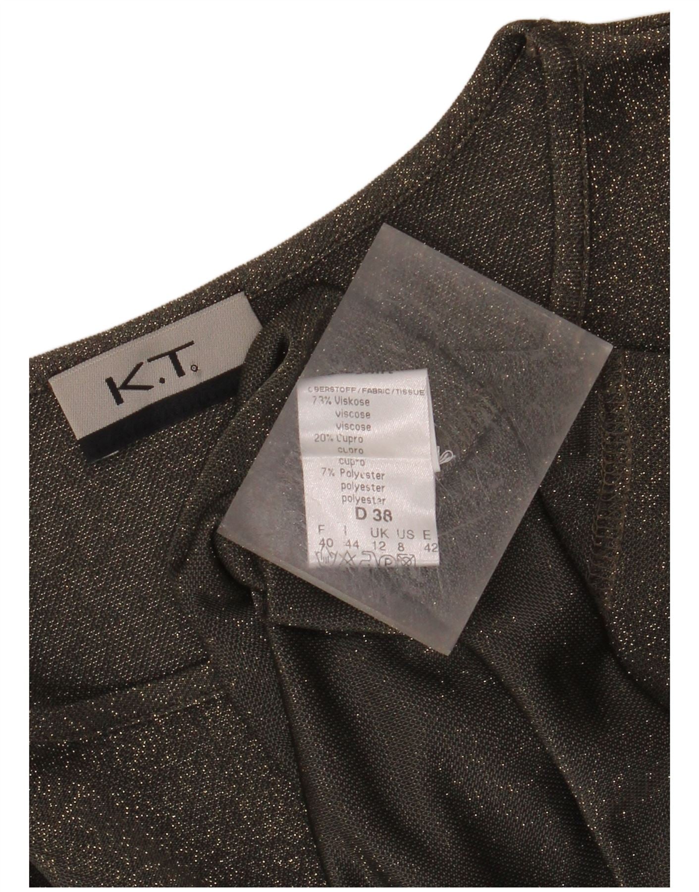 VINTAGE Dame Top Langærmet UK 12 Medium Grøn Flecked Viscose