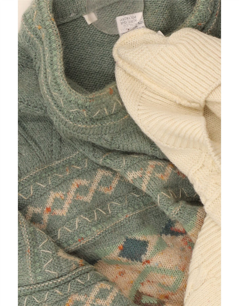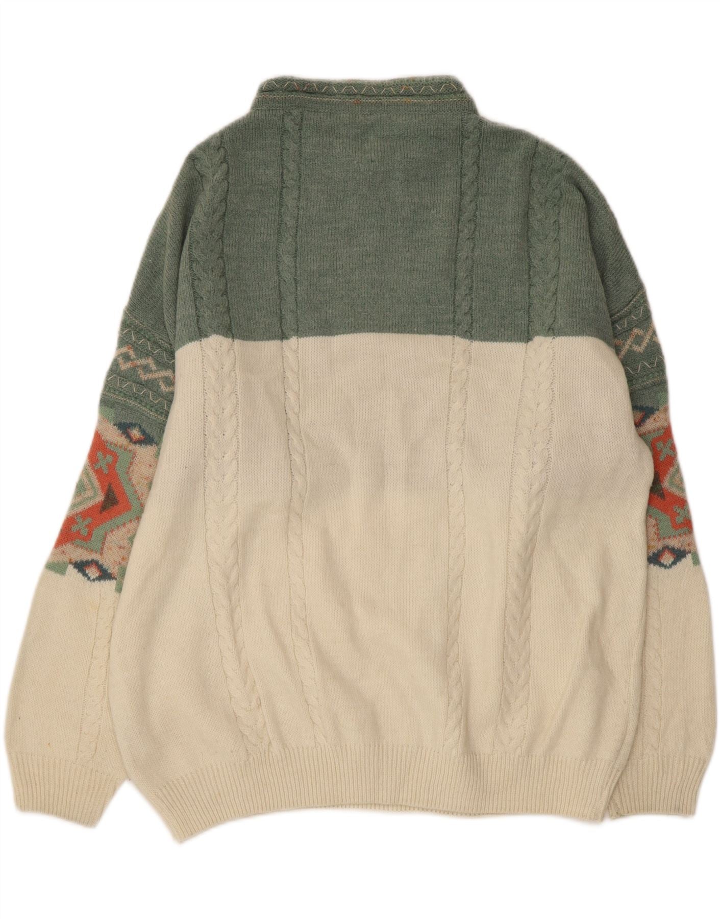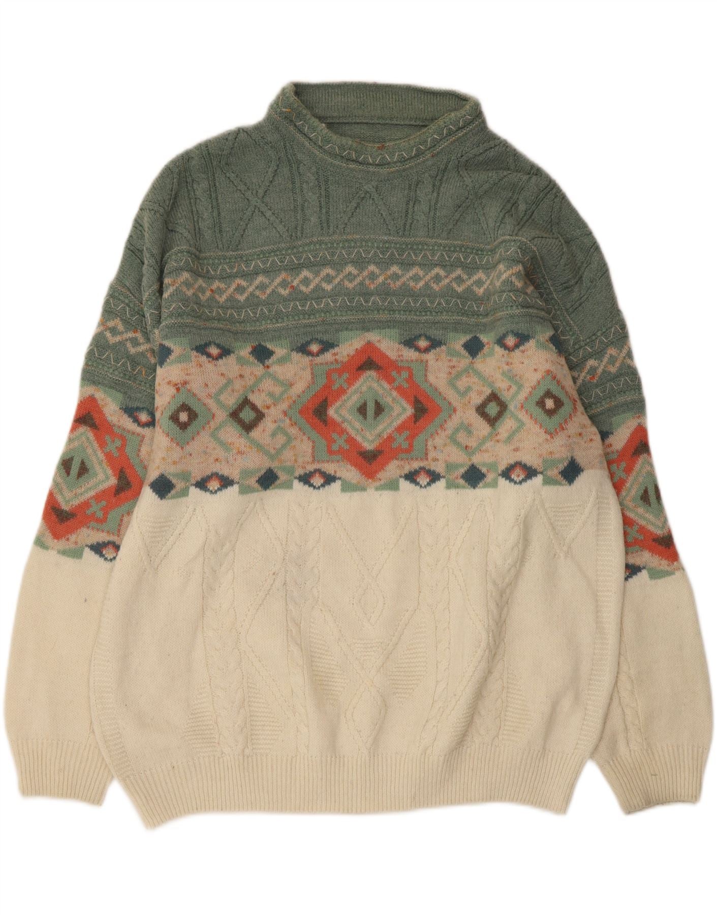 VINTAGE Dame Turtle Neck Jumper Sweater UK 18 XL Green Fair Isle Wool