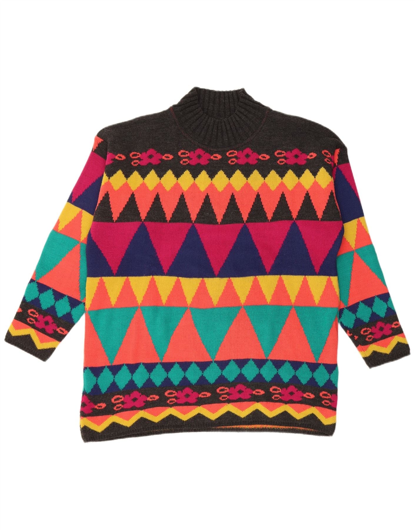 VINTAGE Womens Turtle Neck Jumper Sweater UK 18 XL Multicoloured Geometric