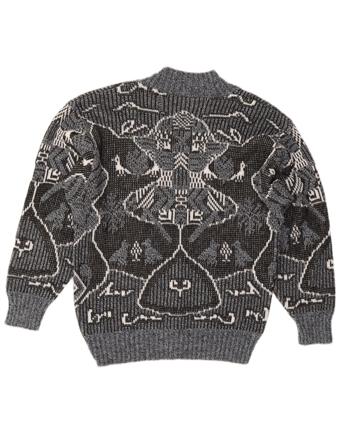 - AI beskrivelse: Denne vintage sweater med V-hals til mænd er lavet af en blød strik af polyakryl og uld. Den har et slående grå, sort og hvid geometrisk abstrakt mønster. V-udskæringen byder på en klassisk silhuet. Lange ærmer afsluttes med behagelige manchetter. En normal pasform sikrer let at bære. Denne pullover-design kombinerer varme med en karakteristisk retrostil.