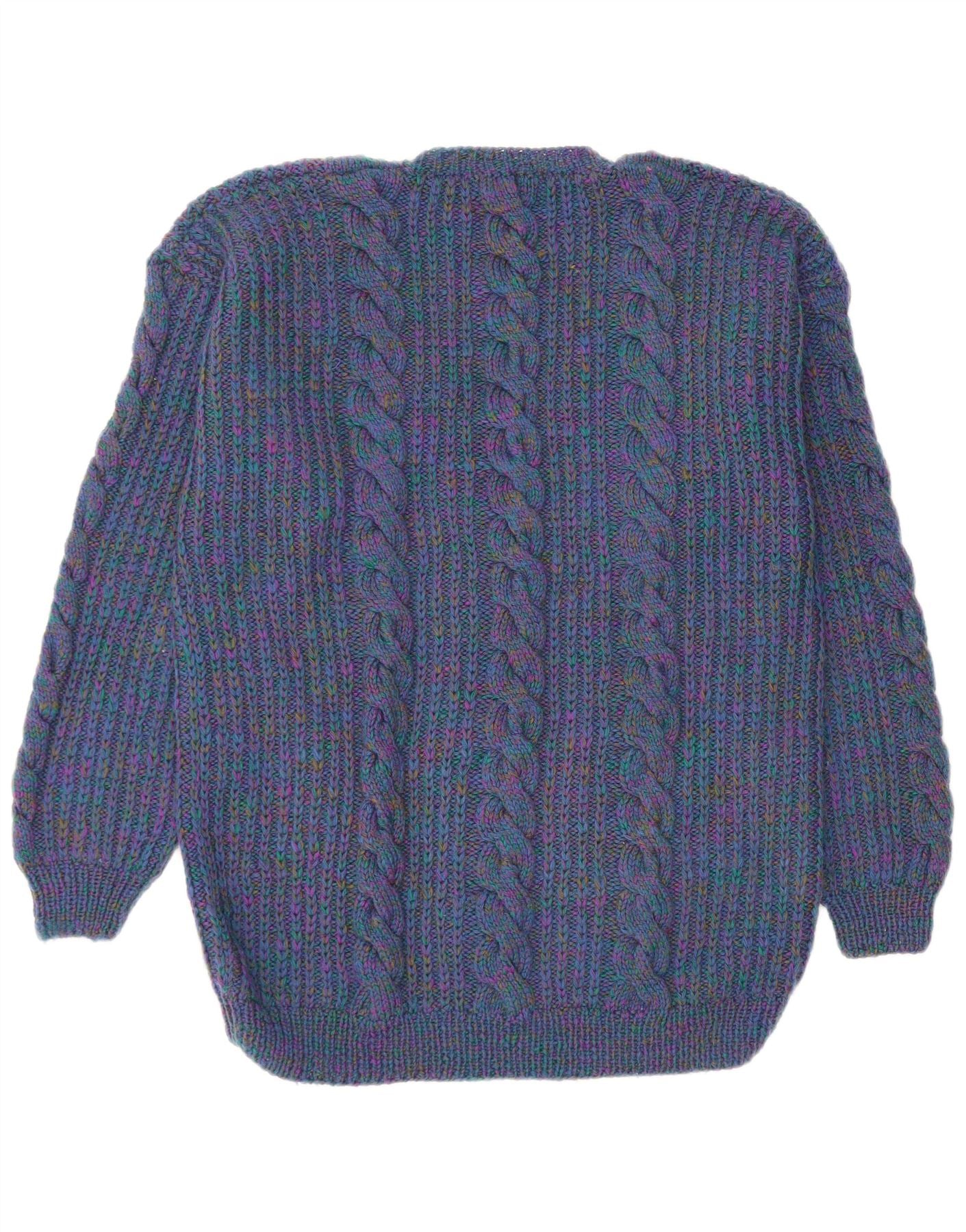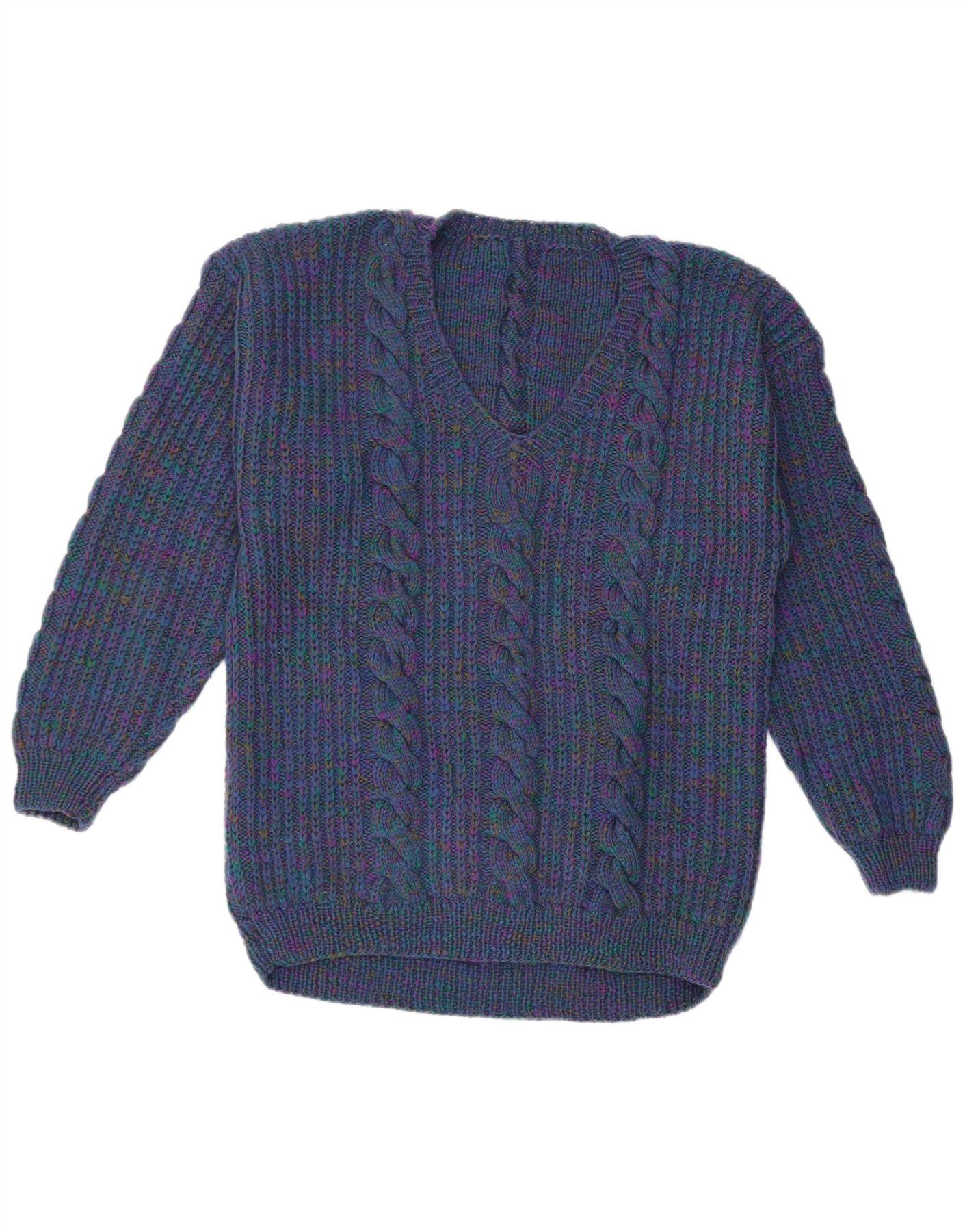 VINTAGE Dame V-hals sweater UK 14 Large Navy Blue Flecked