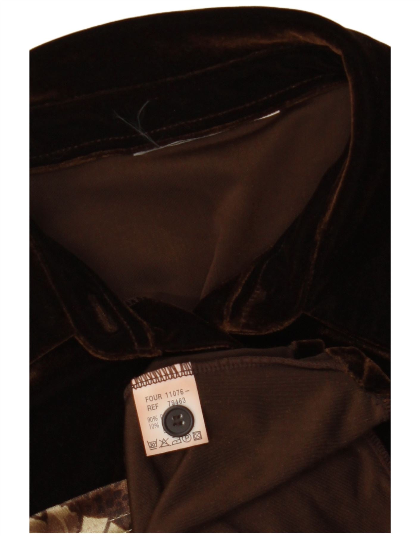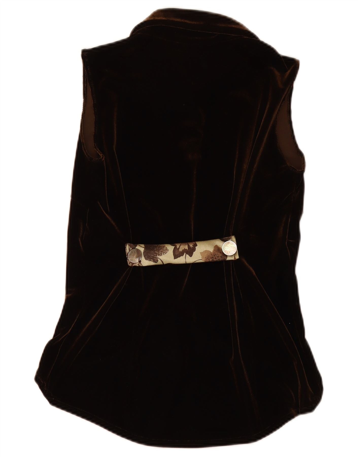 VINTAGE kvinders velour ærmeløs skjortebluse UK 12 Medium Brown Floral