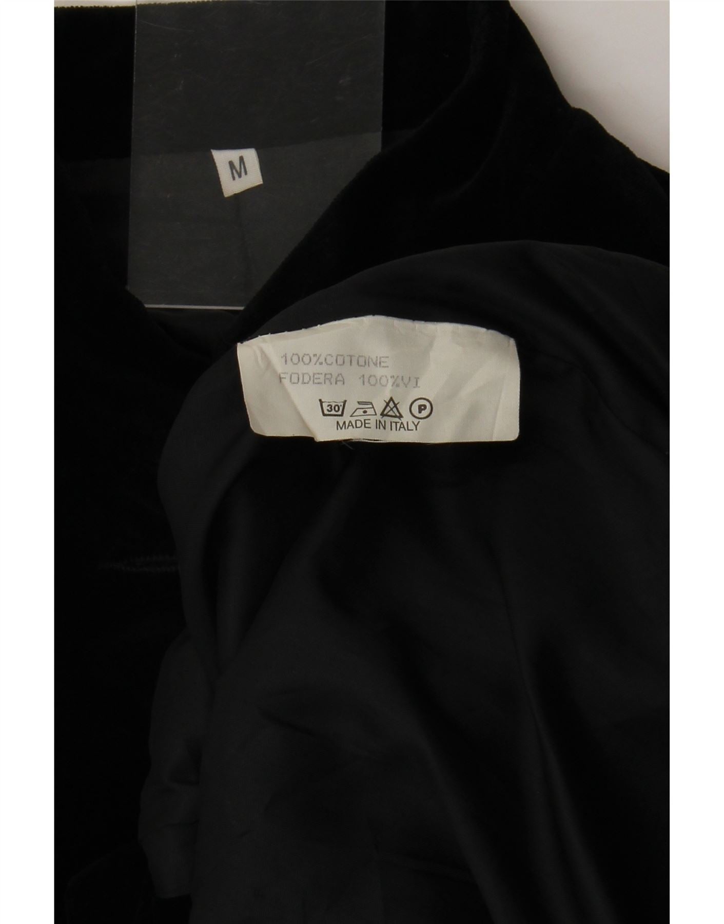Vintage Dame Velvet 4 Button Blazer Jacket UK 12 Medium Black Bomuld