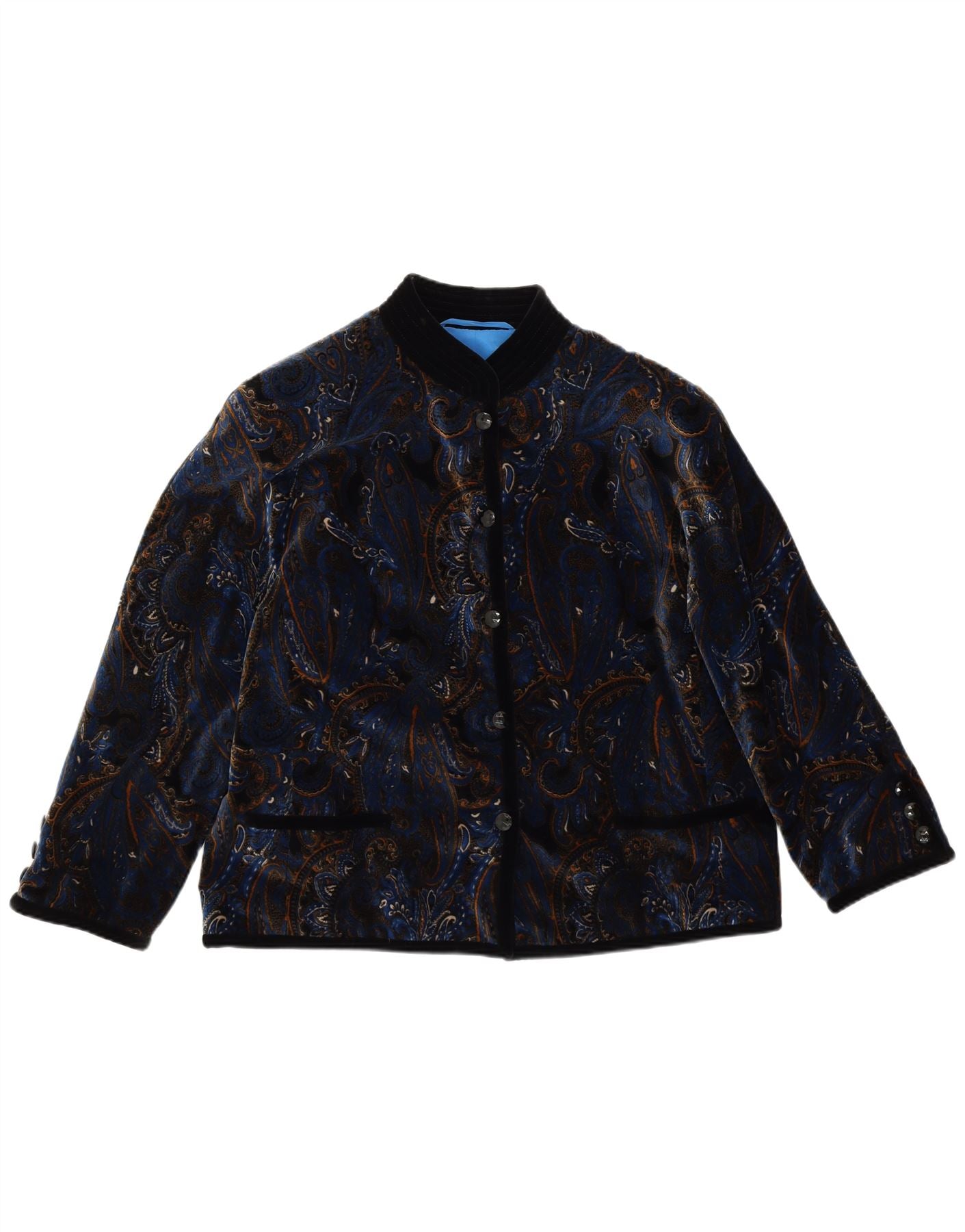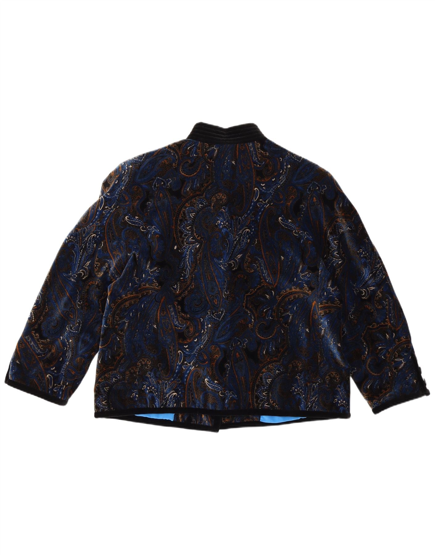 VINTAGE Dame Velvet 5 Button Blazer Jacket UK 14 Large Blue Paisley