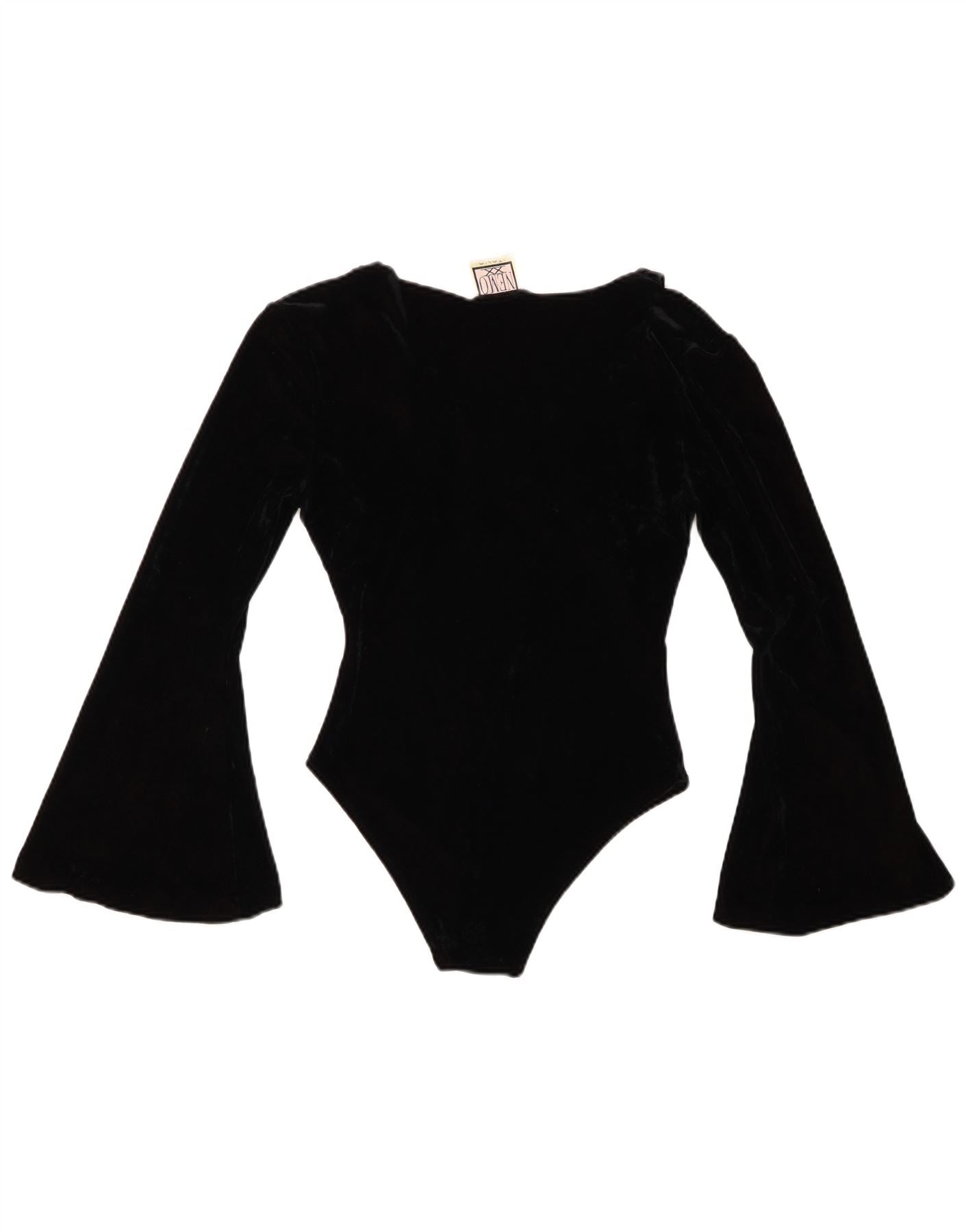 VINTAGE Womens Velvet Bodysuit UK 8 Small Black Acryl